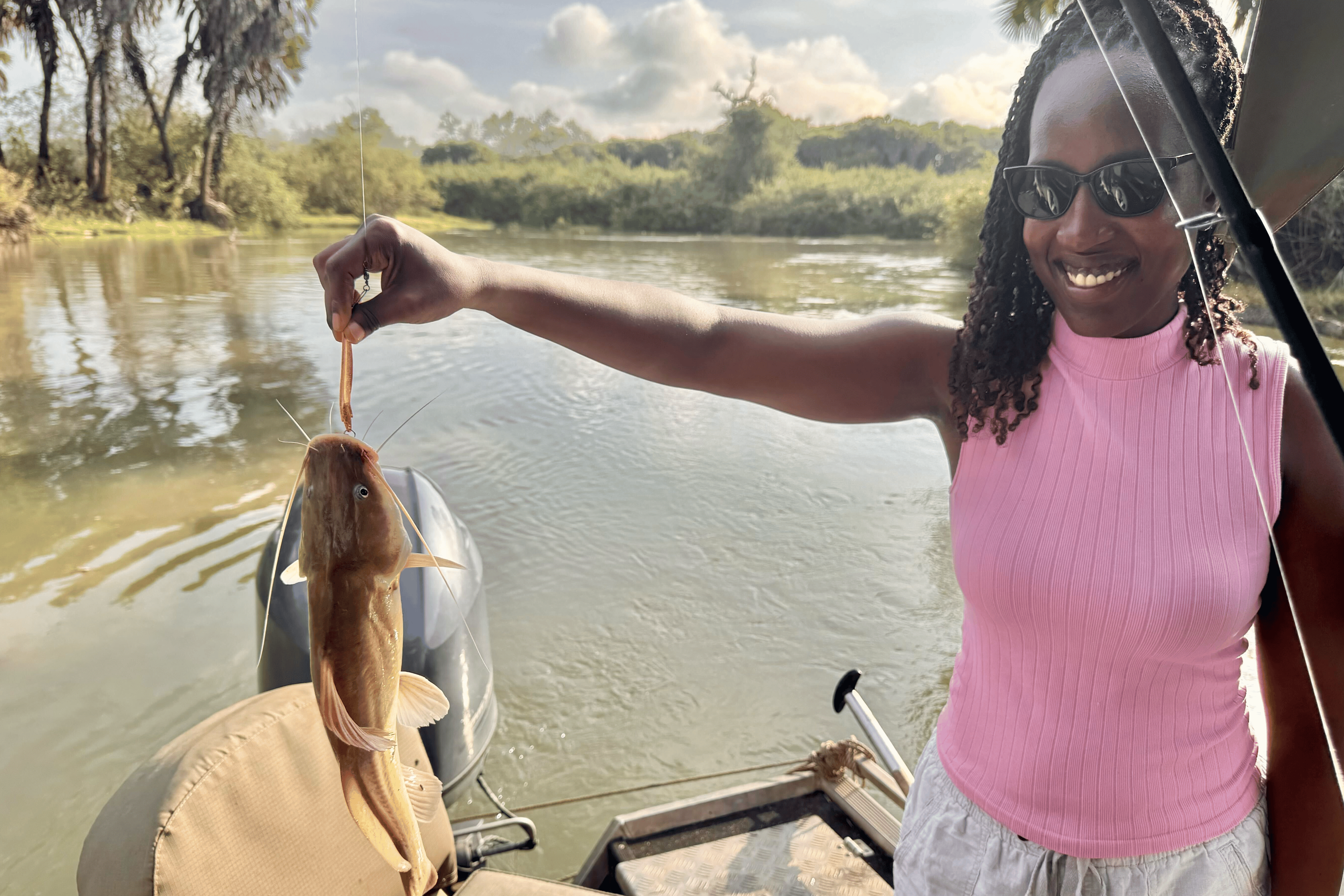 “Another first for me, we went catch-and-release fishing on the Rufiji River. After nearly snagging a fish, there came a series of errors (I even caught a tree!), but then I felt a hard tug and knew I had a fish. Everyone cheered as I pulled and pulled, before reeling in a weighty catfish. After another fantastic drive, we stopped in a stunning spot for sunset G&Ts – the perfect end to what couldn’t have been a better day.”