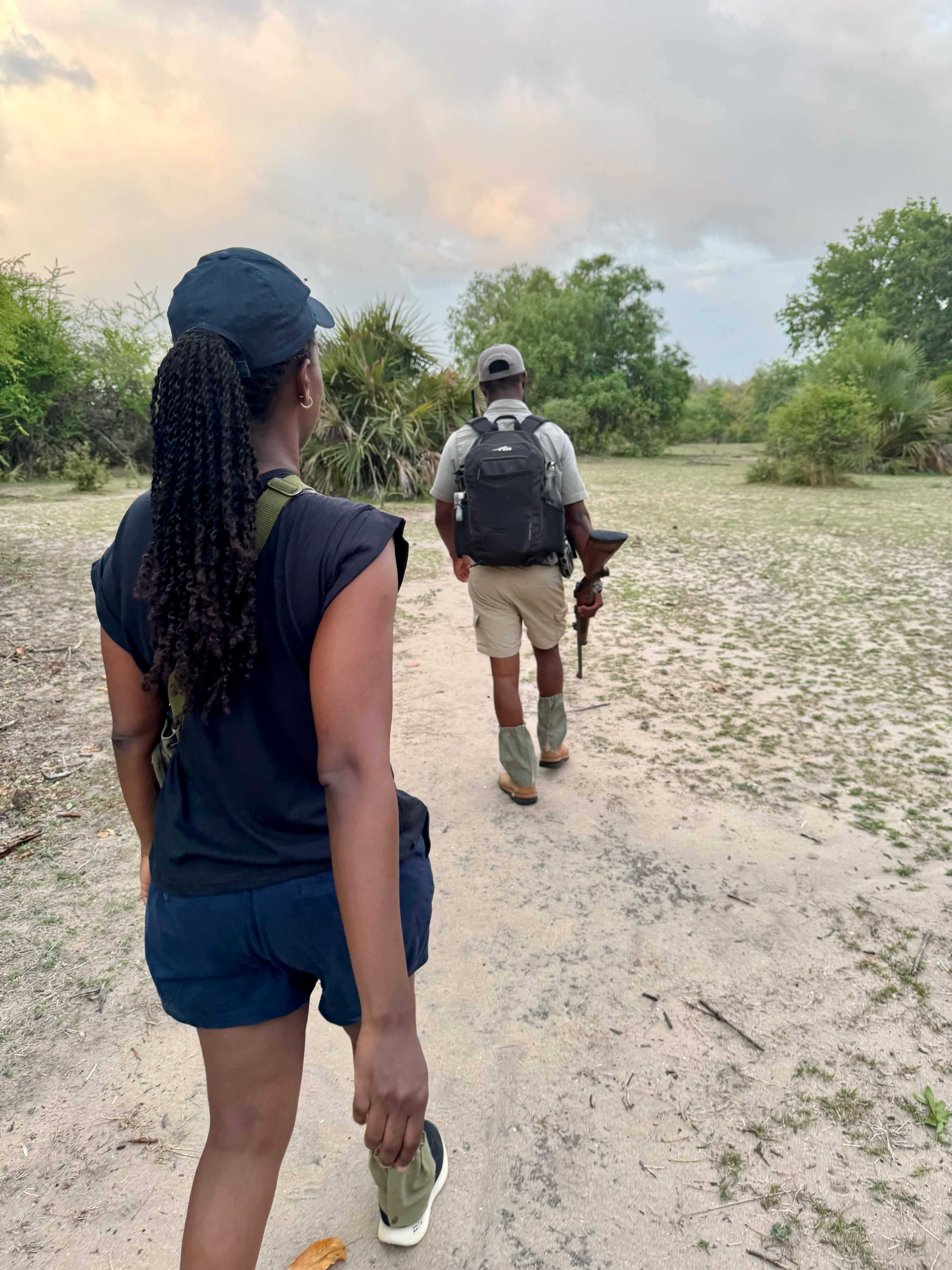 “The next morning, it was time for a proper walking safari. Our wonderful guide, David, knew every scent and call, and not long after hearing our pleas to see leopard and wild dogs, he suddenly whispered, “Leopard, leopard, leopard”. We dared not look it in the eye but crept closer, completely in awe. I have no photo of the first leopard I’ve ever seen on a walking safari, but the memory is glued in my mind.”
