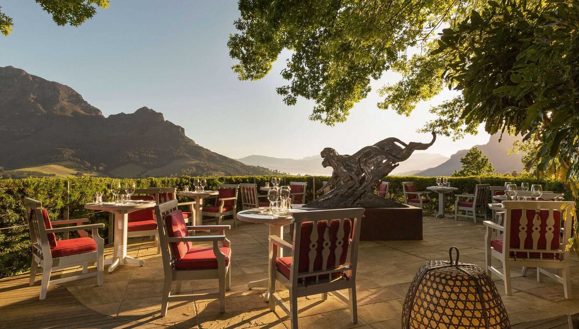 Owned by renowned diamantaire Laurence Graff, Delaire Graff estate is immaculate in every way, starting from the vertiginous drive through the manicured gardens to the restaurant – and the best view in the entire Cape. There are actually two restaurants on the estate: Indochine, a regular on South Africa’s Top 30 Restaurants list and an explosion of fresh, tart Asian flavours, and the Delaire Graff Restaurant, the favourite for many thanks to that view. In summer, white-clothed tables are scattered in the dappled shade on the terrace, waiters flitting by with plates of Karoo lamb, zesty fish dishes and hearty pastas and risottos. It’s bistro fare but impeccable and creative – and the joy of eating alfresco, gazing over the vineyards and mountains of this corner of South Africa, is unforgettable.