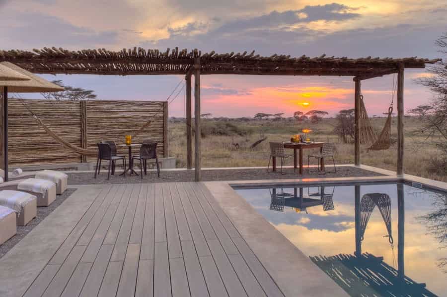 Catch the first of the frenzied Great Wildebeest Migration river crossings from the sleek interiors of Lamai Camp in the northern Serengeti. Based permanently in the north, the plains come alive from June to September as the wildebeest arrive in their hordes. Forgo a game drive and linger in the swimming pool for a chilled-out take on the migration.