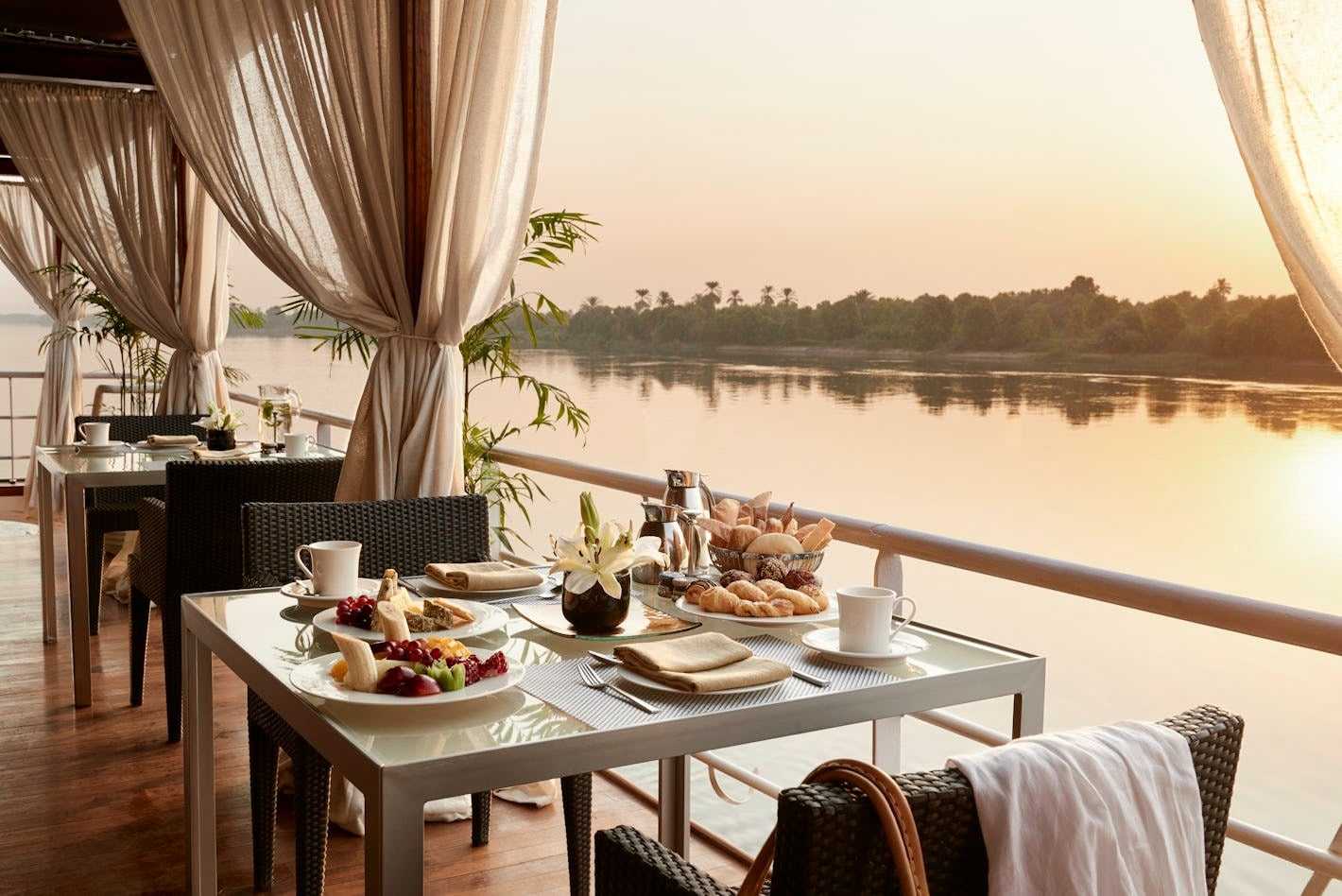 “Another fabulous experience was our cooking class aboard the ship, when we learned to make a few traditional Egyptian dishes, like their famous Koshary and Om Ali. We also had the chance to try a number of other dishes and desserts. My favourite was kunafa, a delicious dessert which is popular in the region after Ramadan. The perfect end to our cruise was sipping on chilled drinks as the sun set, turning the Nile into a river of indigo and gold.”