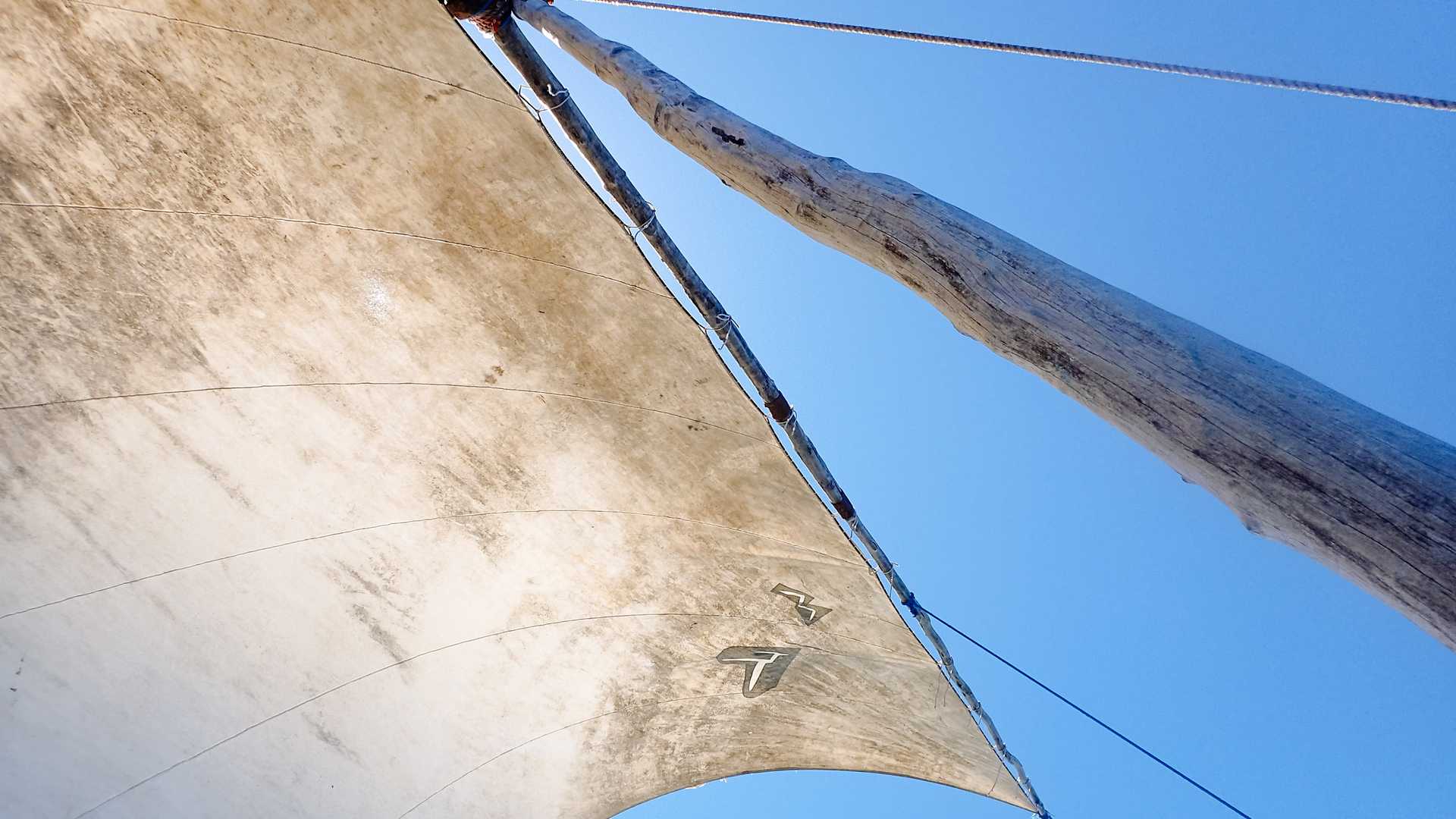 The massive triangular sail flaps in the warm Mozambican wind and then tightens as the boat surges forward, tons of old mangrove wood and steel carving through the water. Wind and sail are our silent engine for the day.