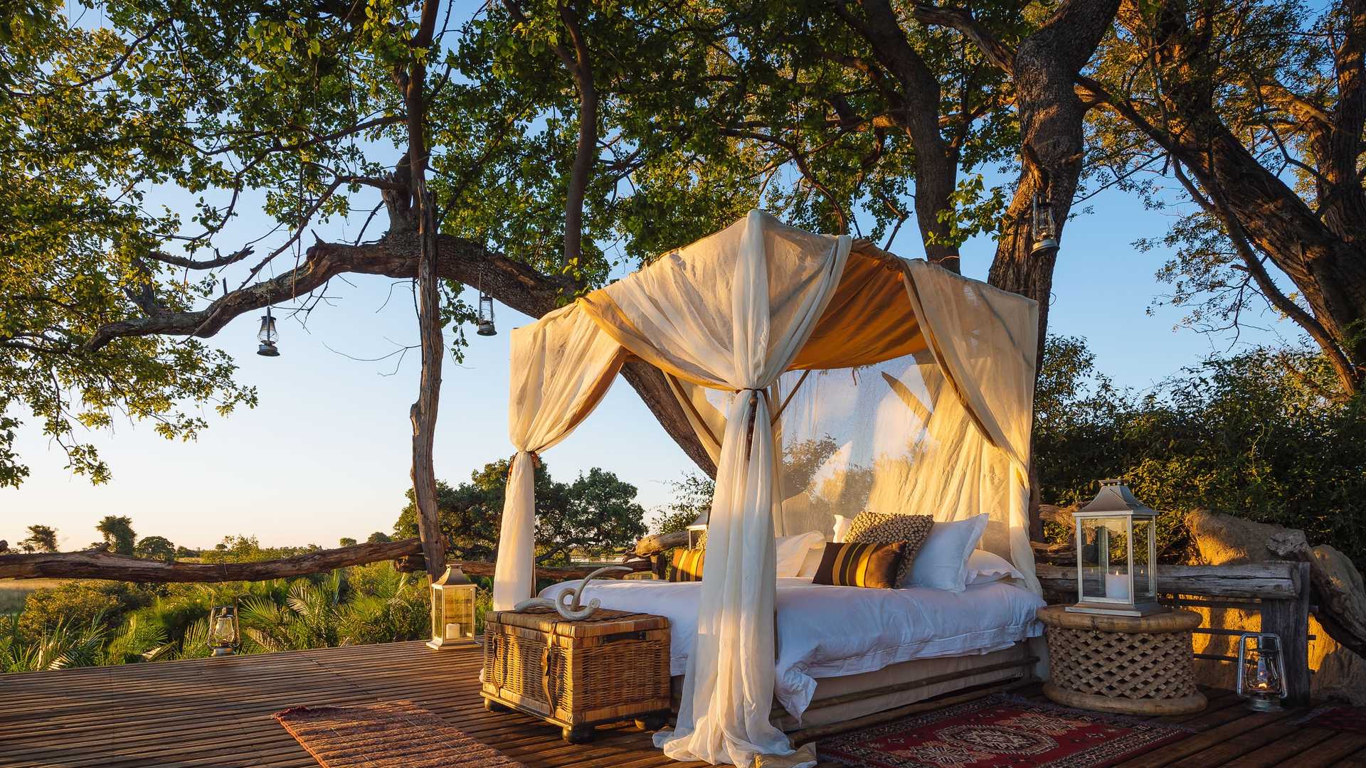 A mention of Jao, located on the border of the Moremi Reserve in the Okavango Delta, is normally accompanied by mutterings of brilliant architecture and exquisite interiors – but the real gem is the sleepout deck. With billowing mosquito nets, and polished wood floors, the deck is beautifully simple and views of the beautiful surroundings take centre stage. There’s also the bonus of a sharp-eyed, watchman-cum-butler who is as ready with the champagne as he is to scare away any marauding wildlife. The perfect place to bed down and relish your own private star show.