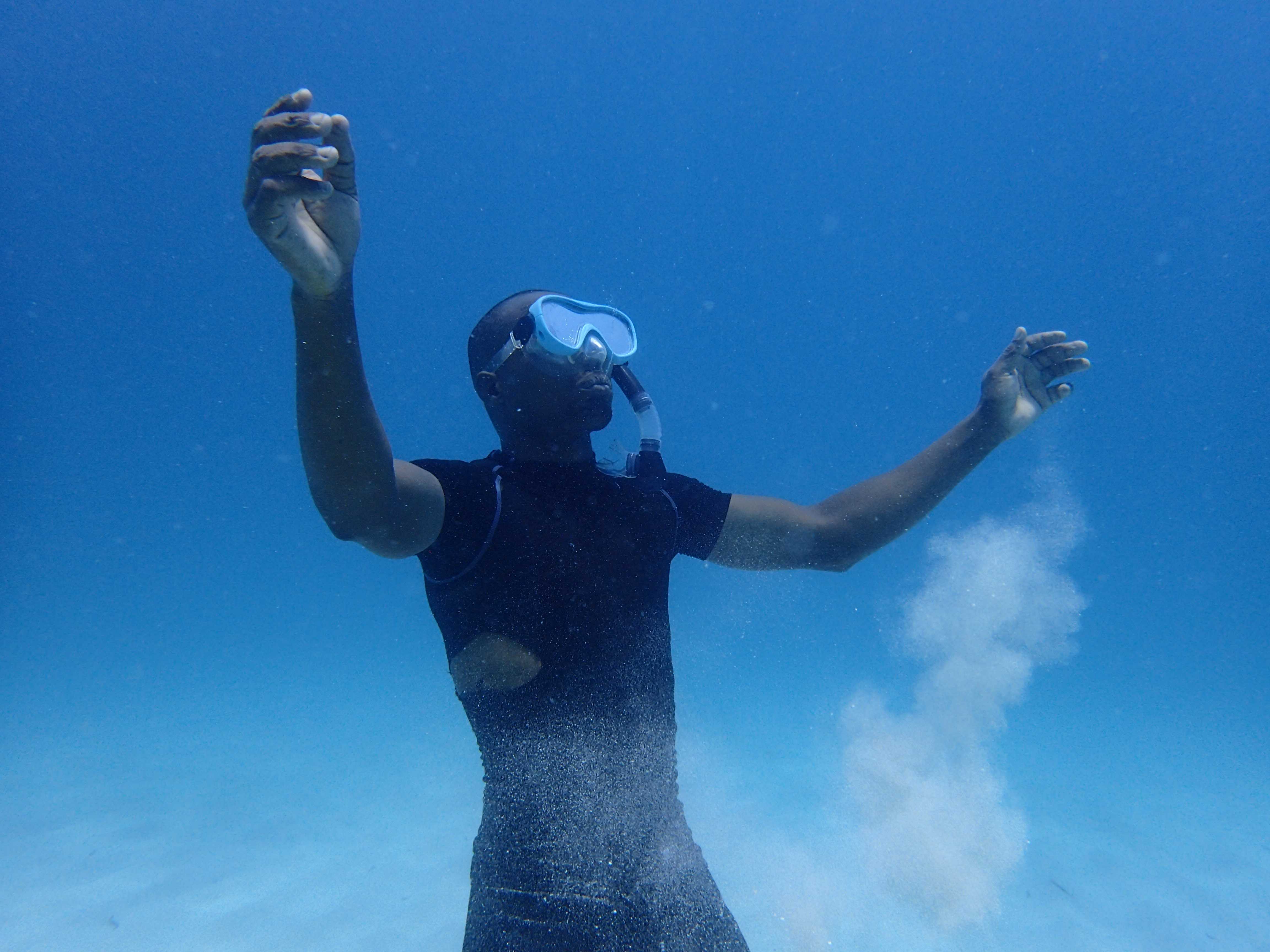 Our guide and captain, Cosmo, warned us that the dolphins had a youngster in the pod, which might make them a little skittish. So it was with some trepidation and excitement that I slid into the blue water in the hope that the dolphins swimming ahead of the dhow would come close to us.