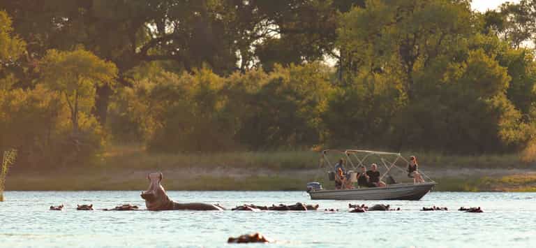 With an ice-cold sundowner in hand (and tasty kebabs to snack on), wind your way past basking hippo, deftly moving Nile crocodile and elephant who trumpet at the water's edge as African fish eagles soar overhead.