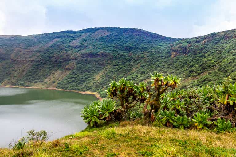Depart in the early morning mist to trek through the leafy forest, perhaps even spotting elephant, buffalo and golden monkey along the way. You can make a pit stop at the midway lake, but the real drawcard is the lake at Mount Bisoke's summit, where the views of its neighbouring volcanoes are enchanting and a picnic on the shore is just what's needed.