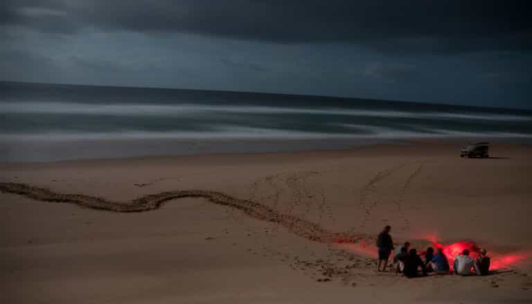 Search for nesting turtle tracks on the beach