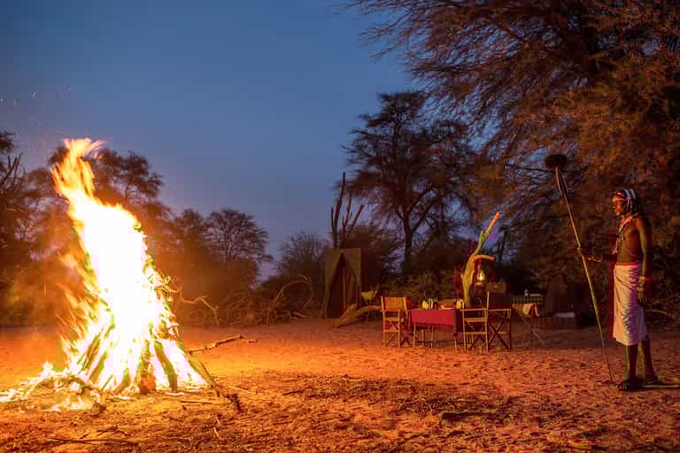 As the sky becomes spangled with stars above Samburu's red landscape, you'll be driven out of camp to find a soft spot for the night. There'll be plenty of time for stargazing and you could even spot the Big Five of the African Sky.