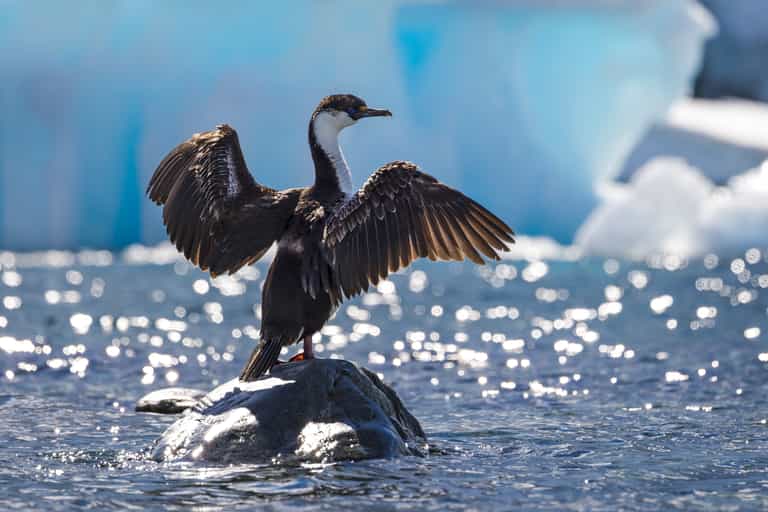 Spy sea birds from shore or by boat in Antarctica