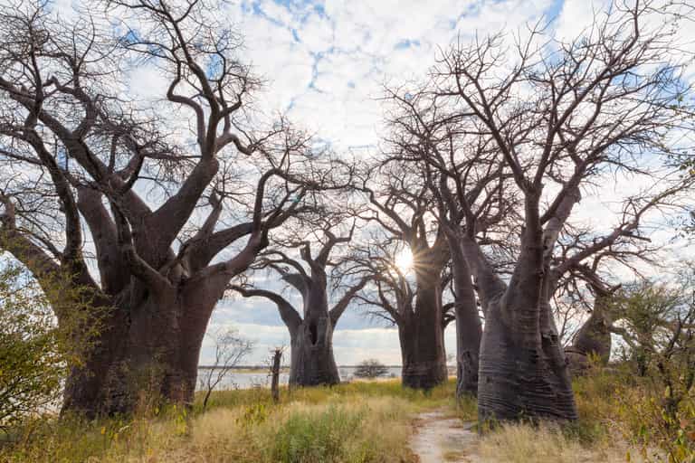 Stand beneath Makgadikgadi's great Baines baobabs