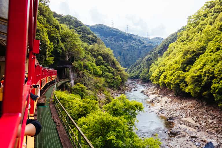Take a trip on the Sagano Scenic Railway in Kyoto