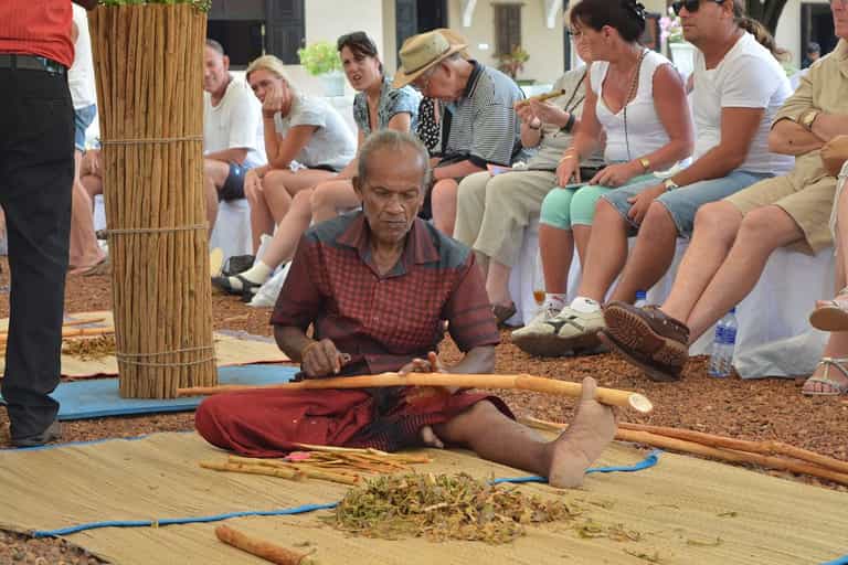 estate, just inland from Weligama. They explain the history of Ceylon cinnamon and demonstrate cinnamon peeling and the making of artisan cinnamon leaf oil. This is followed by a visit up to the plantation house, offering spectacular views over the ocean and jungle, and lunch hosted by the owners. The experience lasts about two hours and involves a short ride by tractor.