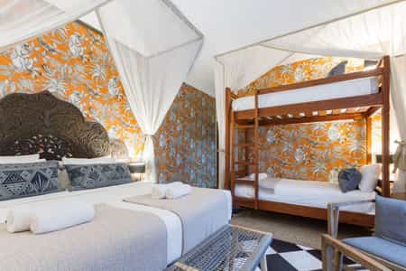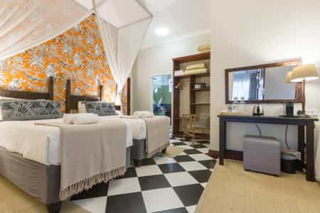 528 Victoria Falls is a unique boutique guest house located just 2.5km from Victoria Falls Town and a stone's throw from the iconic waterfall. You are invited to experience 528's uniquely adorned spaces and personalised service. The architecture of 528 is complemented by rich colours and textures within the space. Wall carvings, murals and bespoke pieces such as the chandeliers have been made by Zimbabwe’s talented artisans. The crowning glory is 528's rooftop bar ‘Treetops’ with spectacular views to the ribbon of the Zambezi and Zambia beyond. Sip a gin and tonic (or any other beverage) as you bear witness to one of the astounding sunsets and watch the lights of Livingstone and the stars emerge. Other facilities include a separate lounge and dining room, with views over the pool and leafy gardens.