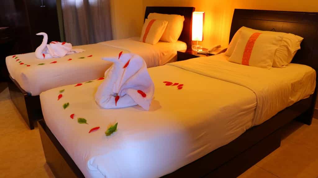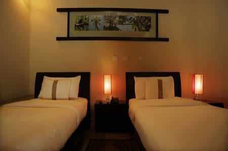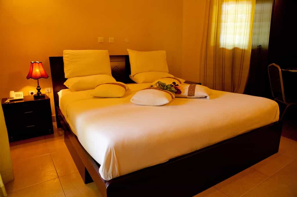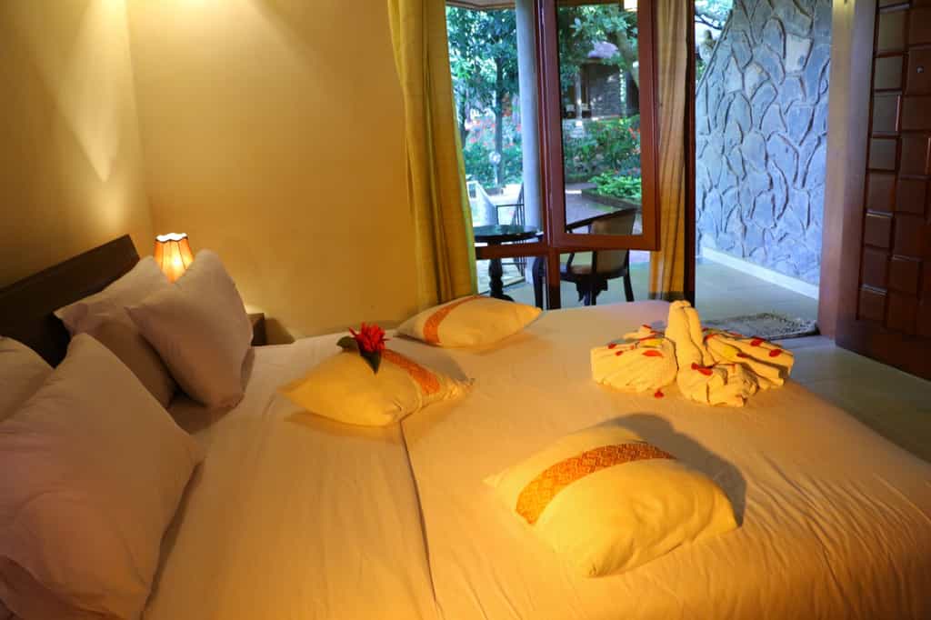 Several bungalows are spread through the lodge grounds, mostly sharing a wall with another, but with a rock partition to allow privacy on your own veranda. Glass doors and thatched roofing allow the beauty of the garden to permeate indoors; and you could spend hours lost in the lushness in a chair on your veranda. Rooms sleep two to four guests in double- or twin-bed configurations, with en-suite bathrooms (with hot water), flat-screen TVs and wi-fi standard throughout.