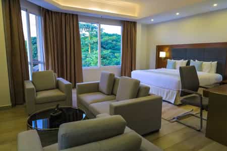 No matter where you are seated, whether in the dining area or at the terrace, you will feel part of the lush green tropical garden. Alongside beautiful ambiance & exceptional service, savour our international cuisine with a glass of fine wine, Admas Grand Hotel.