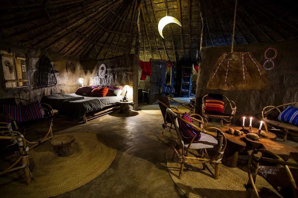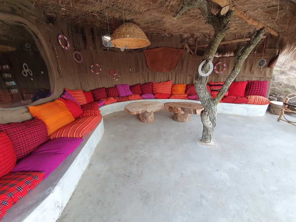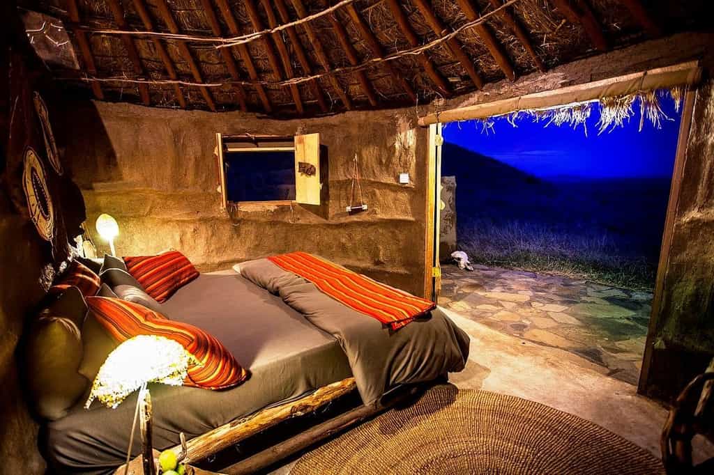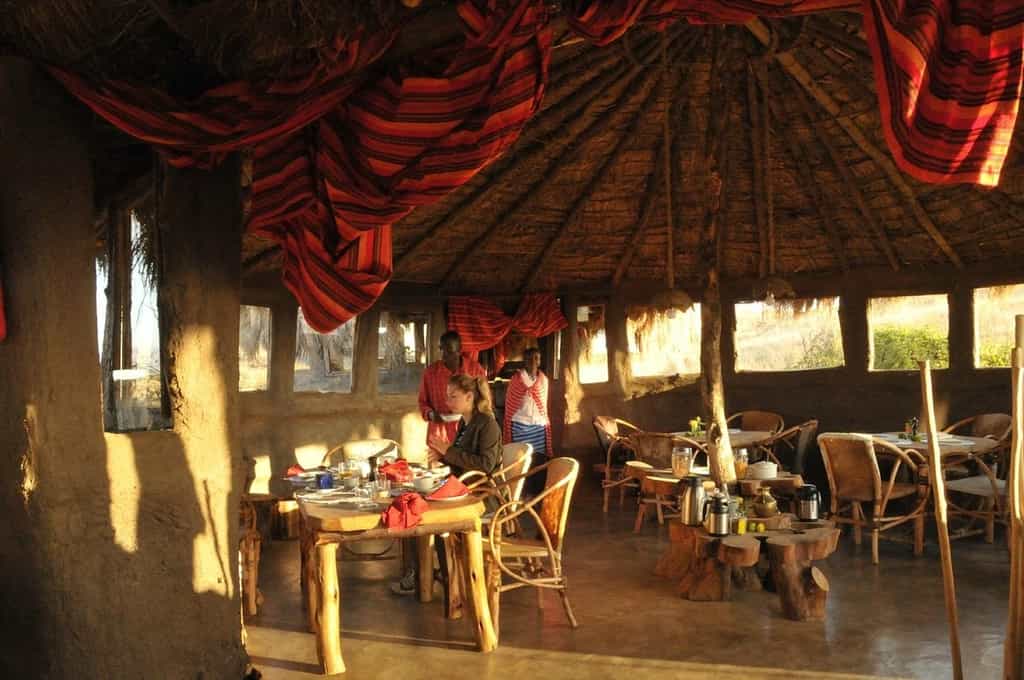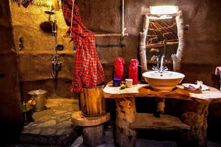 Beautifully decorated mud-huts house the kitchen and dining area, while a stone patio provides spectacular views towards the mountains, and the fire-pit has some huge wooden stumps for chairs. Furniture is handcrafted by the Maasai, mostly from cow hide and local wood, with splashes of colourful fabric. A large, rim-flow pool is surrounded by thatched lapas and sun-loungers, as well as a bio-sauna. Lodge gardens sprout fresh, organic vegetables, and are also home to some beehives and a chicken run.