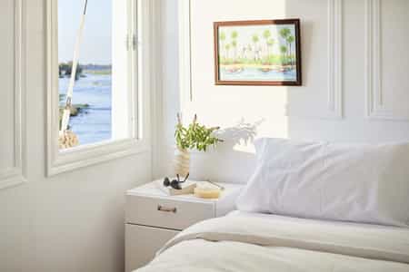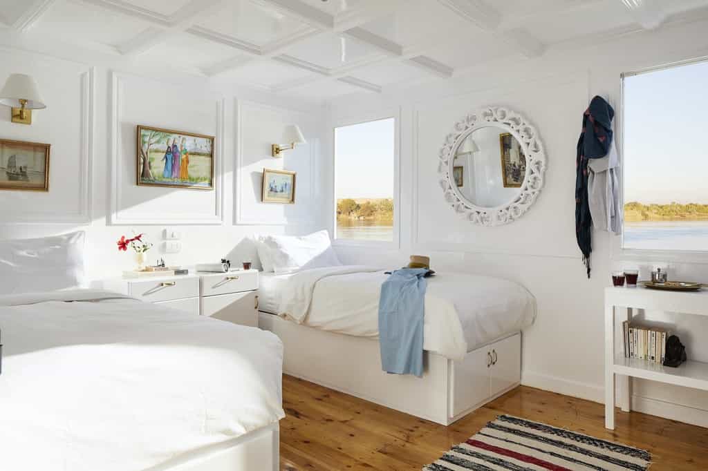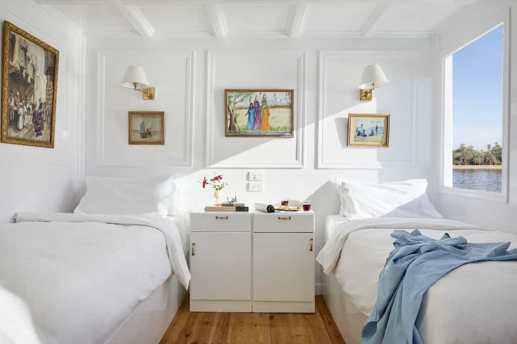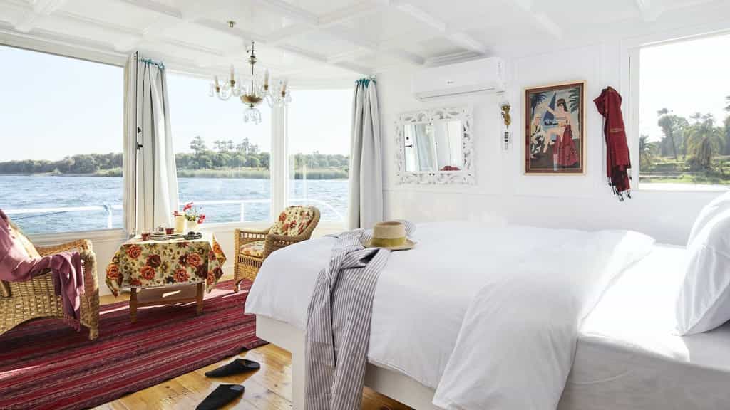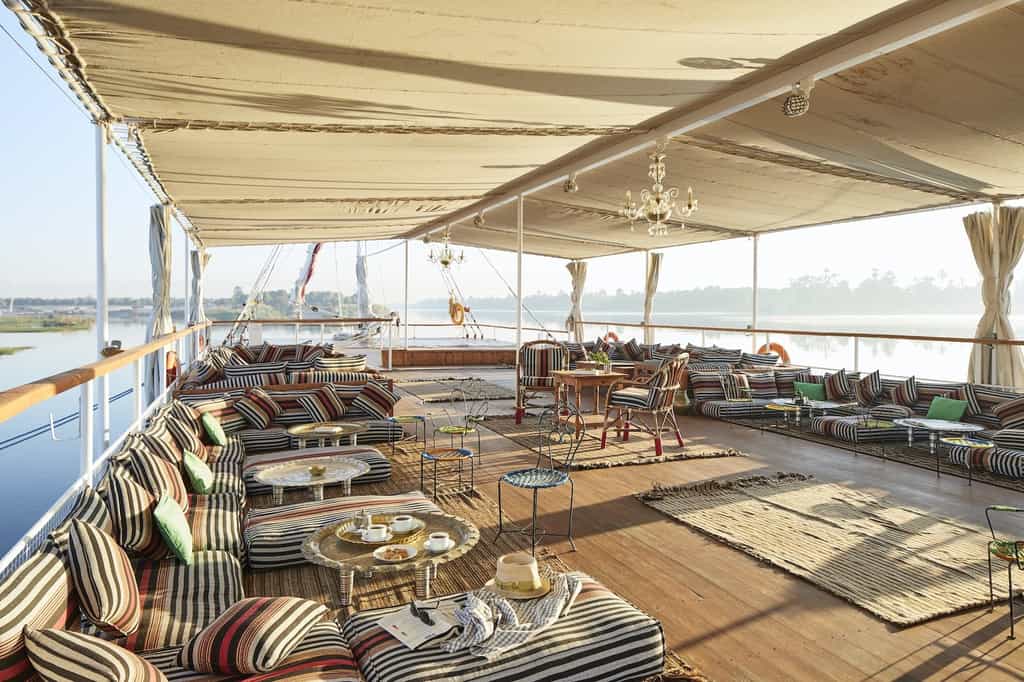 Built in 2020, the Agatha is the the newest of all of Nour El Nil’s dahabiyas offering guests 2 Panoramic Suites and 8 Luxury Rooms to choose from. Guests appreciate the new finishes and unique touches that the designer and owner, Eleonore, has added to this splendid vessel.