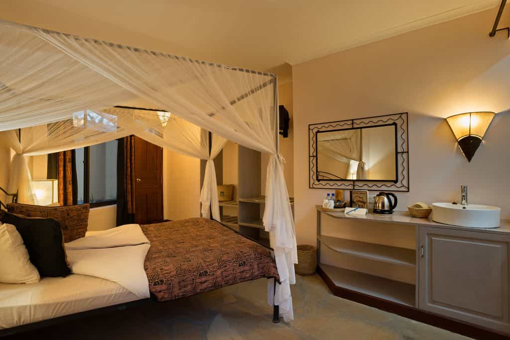 Ahadi Lodge, in its lovely garden setting, is a peaceful retreat. A buffet breakfast is served in the restaurant or on the pool deck; lunch at the lodge or in a hearty lunchbox for the road. In the evening, have a drink in the bar and drift through to the restaurant, where you're assured of a wonderful meal created by three talented chefs, who work their magic using the freshest Tanzanian produce. And when it's too hot to move, dip in the pool.