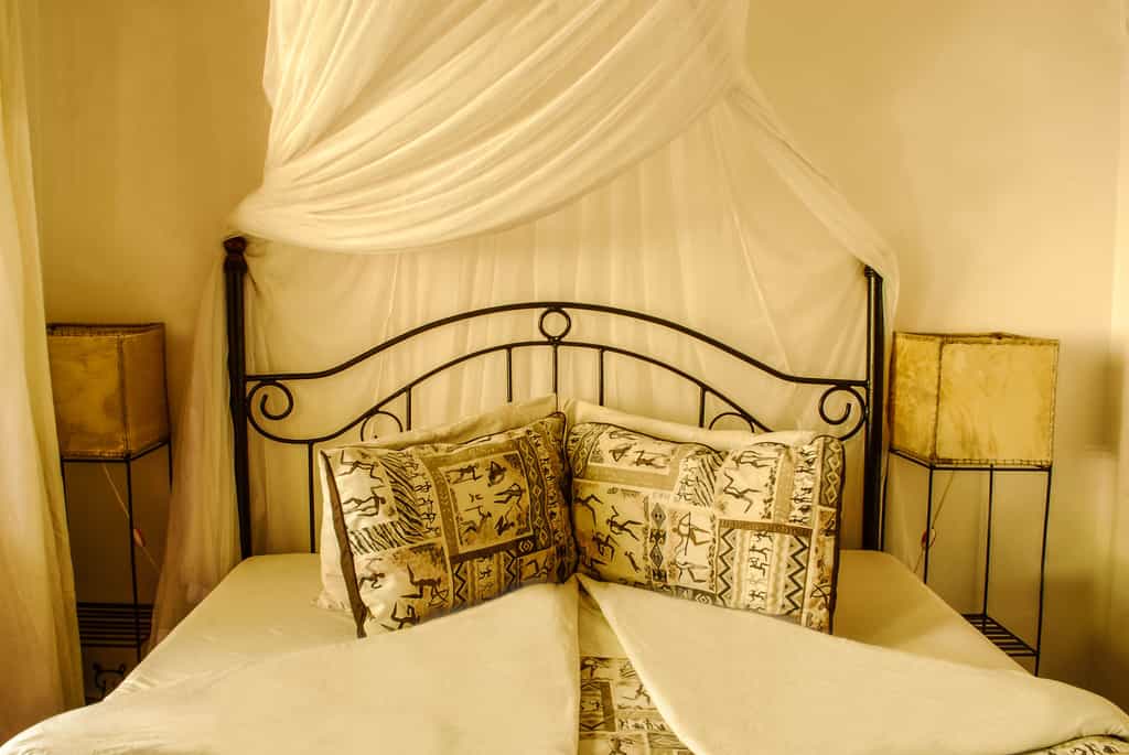 There are five rondavel-style cottages, each with two rooms of varying sizes, plus an additional two rooms. Each has been simply decorated in neutral colours ranging from earthy tones to rusty reds. There's a TV, free wi-fi, and tea- and coffee-making facilities. The bathrooms are efficient, although some visitors may find the simple curtain separating the ablution from the sleeping facilities somewhat inhibiting.