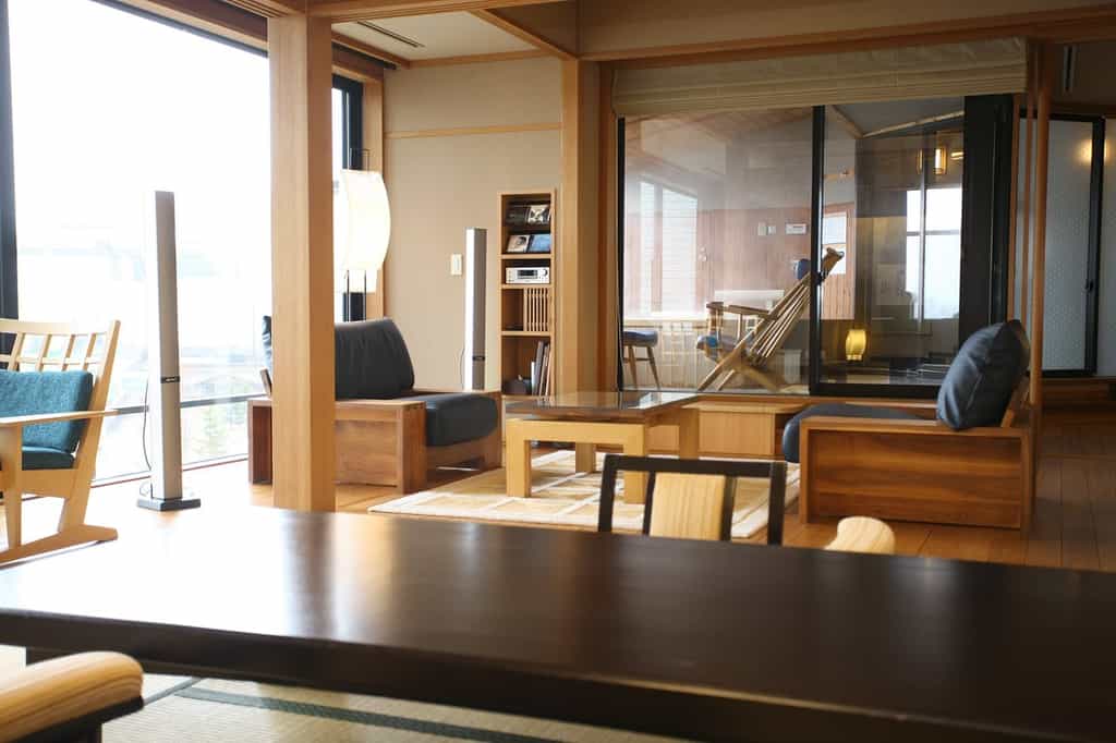 Quaint and understated, Hinanoza's design incorporates swathes of polished wood, wall-to-wall glass and sliding shoji screens to create an authentic yet modern feel. The hotel offers both western and Japanese-style dining, but a favourite is the kaiseki dinner, served in a private room and celebrating the ingredients of the season. The bar serves a range of matured sake or wine from its cellar, which is best enjoyed overlooking the lake. The central areas are decorated with artwork inspired by Hokkaido's natural beauty.