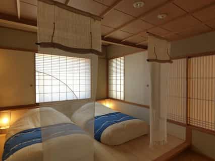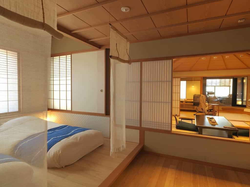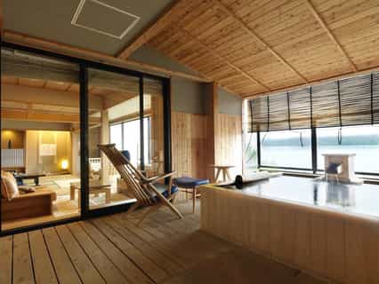 Simply but comfortably furnished, the rooms feature cushy, raised beds, a traditional dining area and lounge with a stunning view of the lake and its picture-perfect surroundings. On the deck, you'll find your own private onsen and loungers — the perfect spot from which to take in the vista before you. The bathrooms are slick and well-equipped with high-end toiletries, a huge rainfall shower, and a large mirror