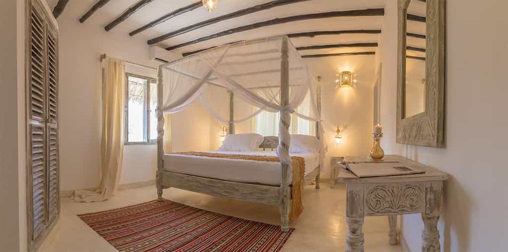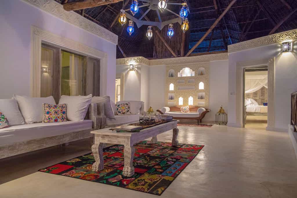 Sea breezes are encouraged to drift through the broad, open-sides of the hotel's double-storey structures, and plenty of long, pillow-laden sofas ensure there's always a secluded spot to lounge. The interiors encapsulate the Swahili Coast beach-house style, with woven thatch roofs supported by wooden beams, and bleached walls inlaid with details such as bas-reliefs. The restaurant is open-sided too, with flagstone floors and sand-coloured tablecloths. Too bland? The cuisine is deliciously vibrant in both taste and appearance. No disappointment here!
