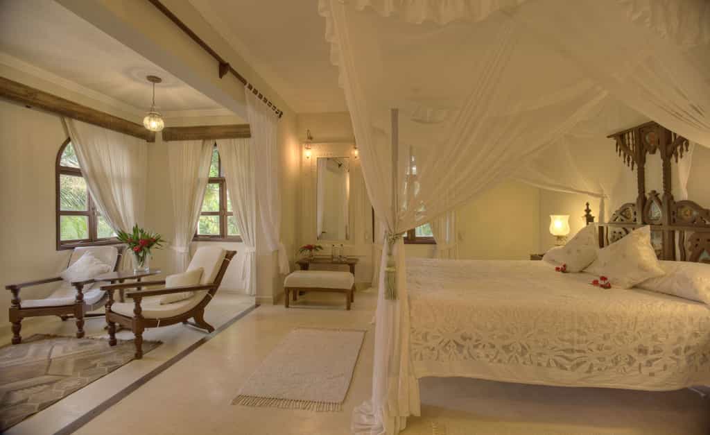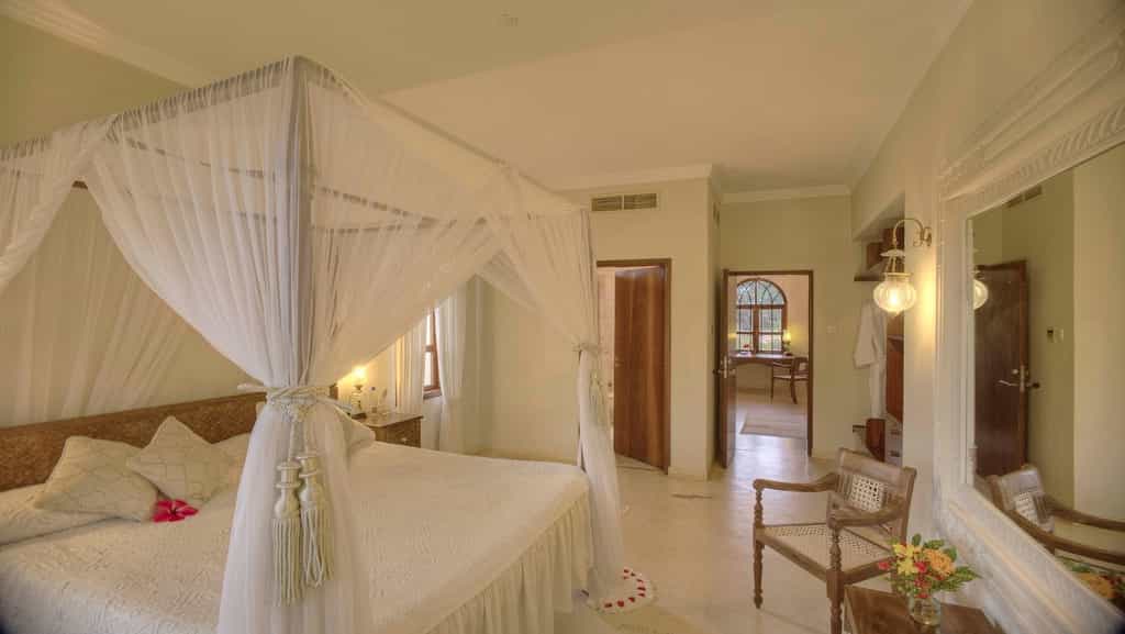 Almanara offers a choice of six private executive villas, and five sumptuous hotel suites, all with superb amenities and exotic Arab-Swahili décor. The villas suit families or groups, each with three en-suite bedrooms, a vast lounge and dining area leading out onto a private veranda, and a personal chef and butler. The elegant hotel suites are spacious and stylish, with Italian marble en-suite bathrooms, and glorious ocean views from the private balconies. All have satellite television, WiFi, and air conditioning.