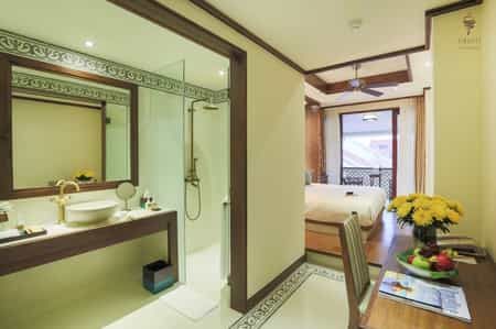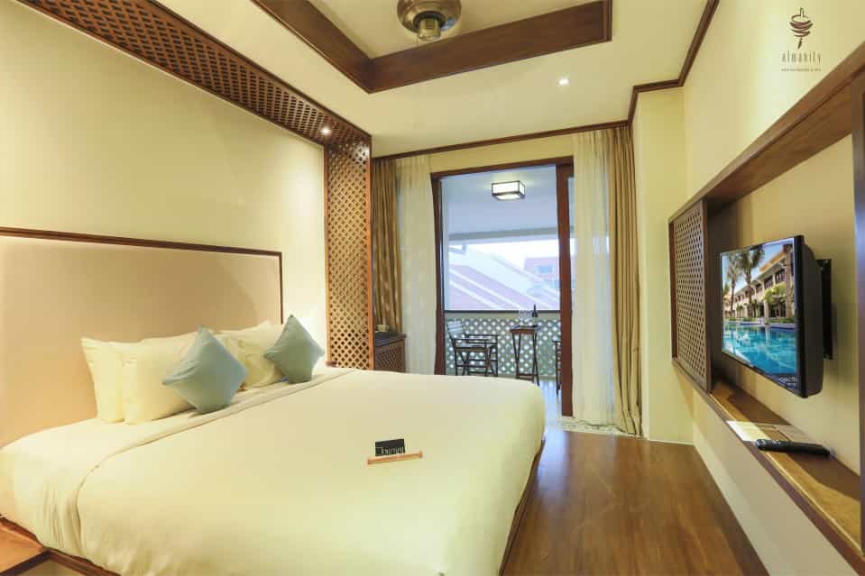 The Almanity Hoi An Wellness Resort is located only a short walk from the renowned ancient town of Hoi An. The hotel offers a fine choice of 138 rooms which cater for a wide variety of preferences and vacation types. Each room has an elegant ambience and with each room equipped with air conditioning, satellite Tv, minibar, ensuite bathroom and Wi-Fi. The onsite Four Plates Restaurant offers an exciting culinary experience in ancient Hoi An showcasing cuisine from Vietnam, Japan and Italy with meats and vegetables served straight from the grill. The Blue Bottles Bar is the perfect spot to enjoy an array of drinks and cocktails in a casual yet refined environment. The My Chi Wellness and Spa Center incorporates a wide range of elements such as Yoga, Tai Chi, Massage Therapy, Sauna and Steam to revive the body and mind of guests. Complimentary in-house activities include fish feeding, Vietnamese lessons, herbal tea meditation and an international Art Gallery that hosts regular International Art Exhibitions of celebrated works.