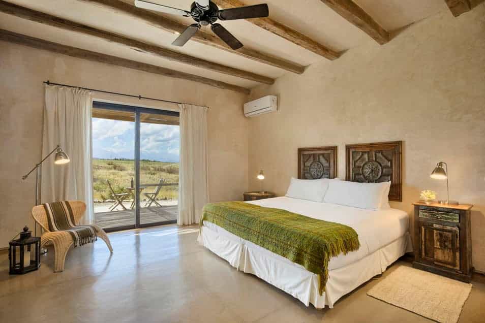 Alpasión Lodge has 7 luxurious double rooms. All rooms have private terraces, cable TV and Wi-Fi internet. Each room has a unique style based on one of the elements: metal, wood, earth, air, water, fire. Three of the guest rooms can be configured as twins if required. The facilities include a Wine Cellar to taste an excellent variety of wines from the region, a large dining room, cozy living room to unwind and a library with a fireplace where you can enjoy reading the collection of books.
