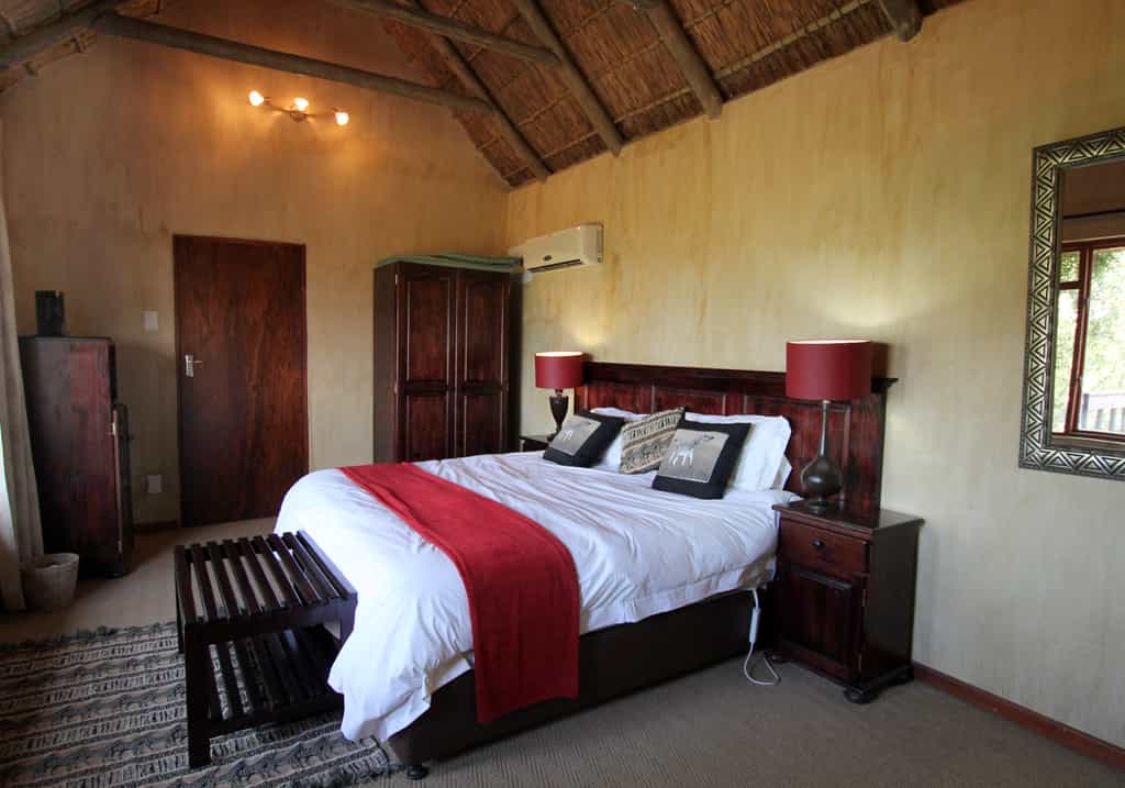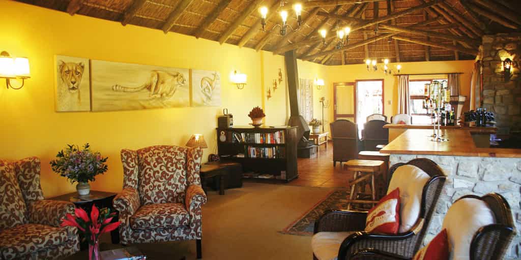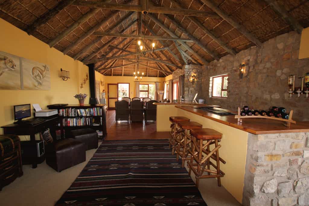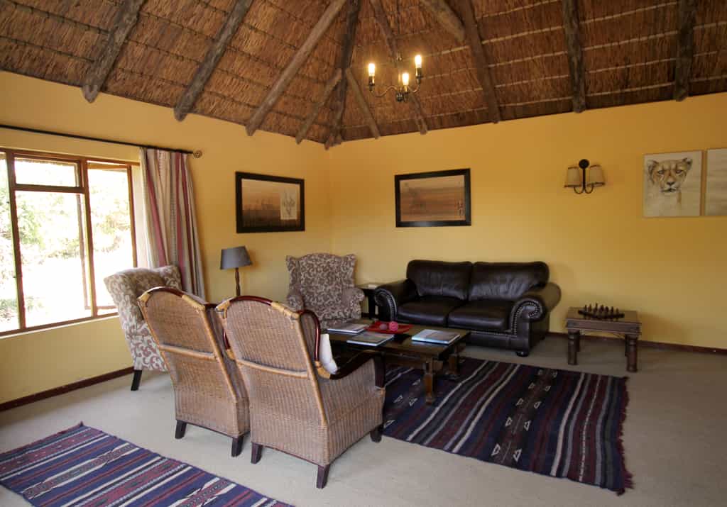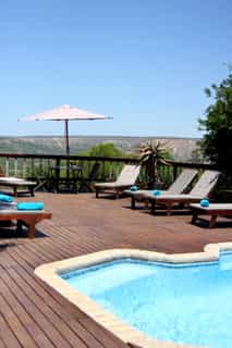 The lodge makes the most of its location on top of a rocky, aloe-dotted hillside overlooking the river valley: every corner has a stunning view. The long lounge and bar area is spacious and comfortable, even if the decor is a little outdated. There's a TV and wifi available here for those wanting to keep up-to-date on the outside world. Slip out of the bar on to the pool deck - a great place to chill between drives while keeping an eye on the animal traffic below. A communal fire and braai-place marks the centre of the camp. The upstairs deck plays host to brunches and teas, while the small dining room inside keeps things intimate around an impressive yellowwood table.