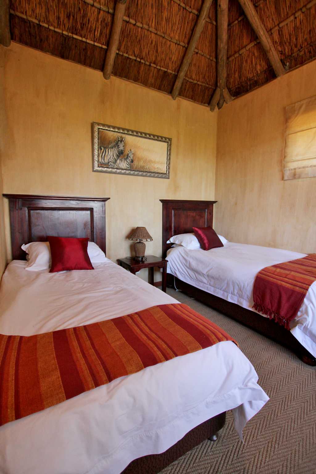 Six secluded stone and thatch chalets are spread out along the rocky hillside. Each chalet has its own private deck, and a few suspend impressively above the gorge. Two family suites accommodate four people each. All the rooms have air-conditioning and heating, including heated bathroom floors; the en-suite bathrooms also boast bathtubs with spectacular views. Each chalet has a small separate lounge area with its own tea/coffee station and minibar fridge. The rooms exude a homely atmosphere and make good use of some fine local wood.
