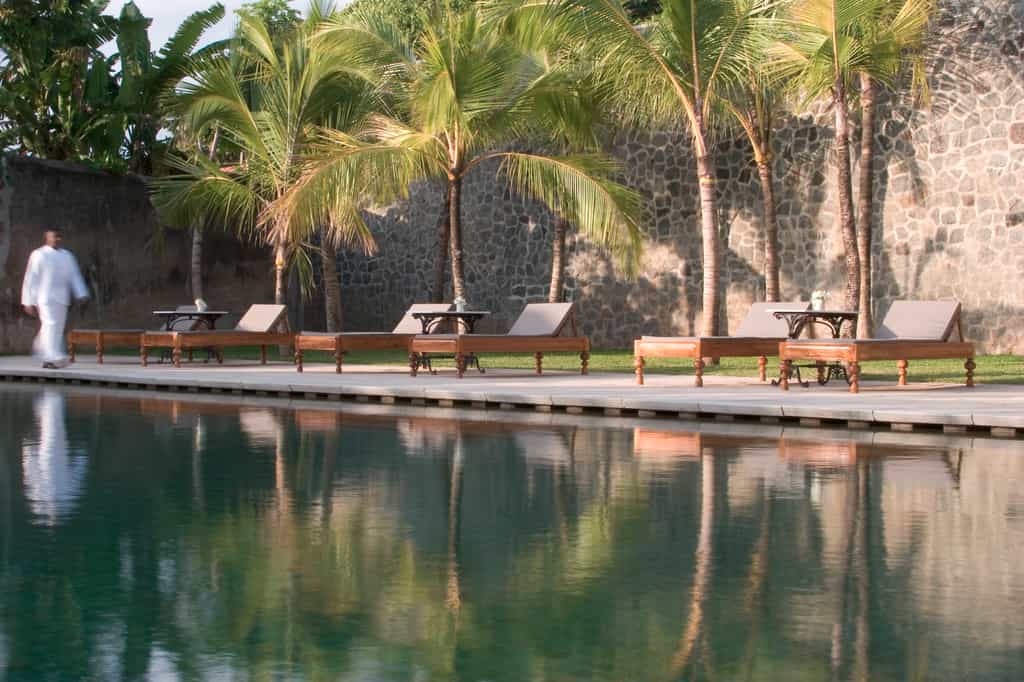 With views of either the tropical garden or Galle Fort, Amangalla has simple yet homely rooms or larger suites, each with well-appointed bathrooms. Decked out in four-poster beds, old-fashioned chests and a bar cabinet, the rooms have a traditional feel. The suites also come with a lounge area and view of the harbour. Set apart from the other rooms, the two-storey Garden House has a wrap-around balcony, a bedroom on the top floor and spacious dining room that opens onto the lawns.