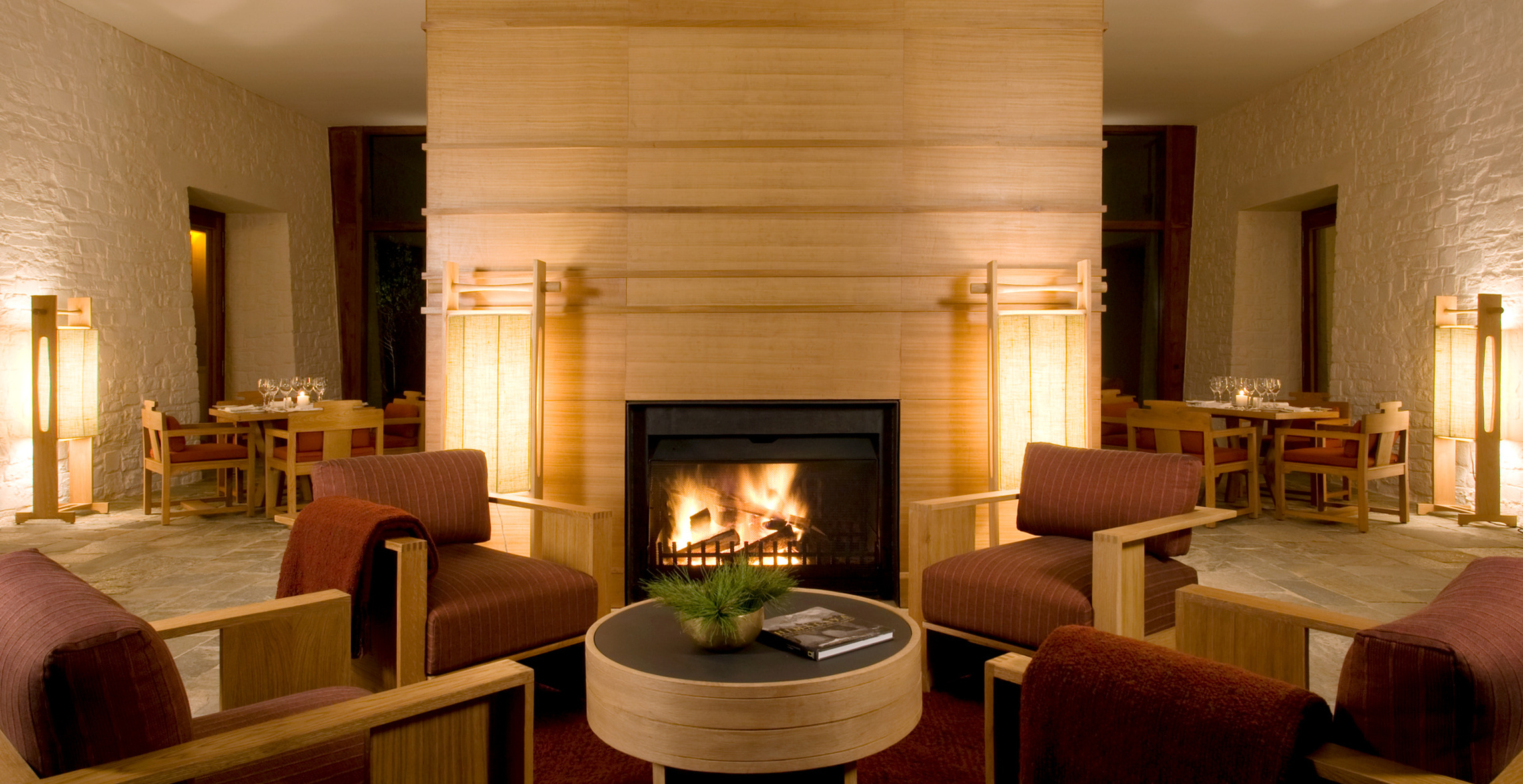 Understated and easy on the eye, the two-storey hotel has a central dining area furnished with puce armchairs and a crackling fireplace. Tuck into tasty meals like yak carpaccio and stop at the bar for a drink to suit any season. To soak up the views, you can also enjoy meals in the courtyard under the shade of fruit trees or lounge in the cushioned seating area where local performers entertain in the evenings. The spa offers treatments infused with local herbs and mountain honey, and morning yoga sessions can be enjoyed on the lawns.