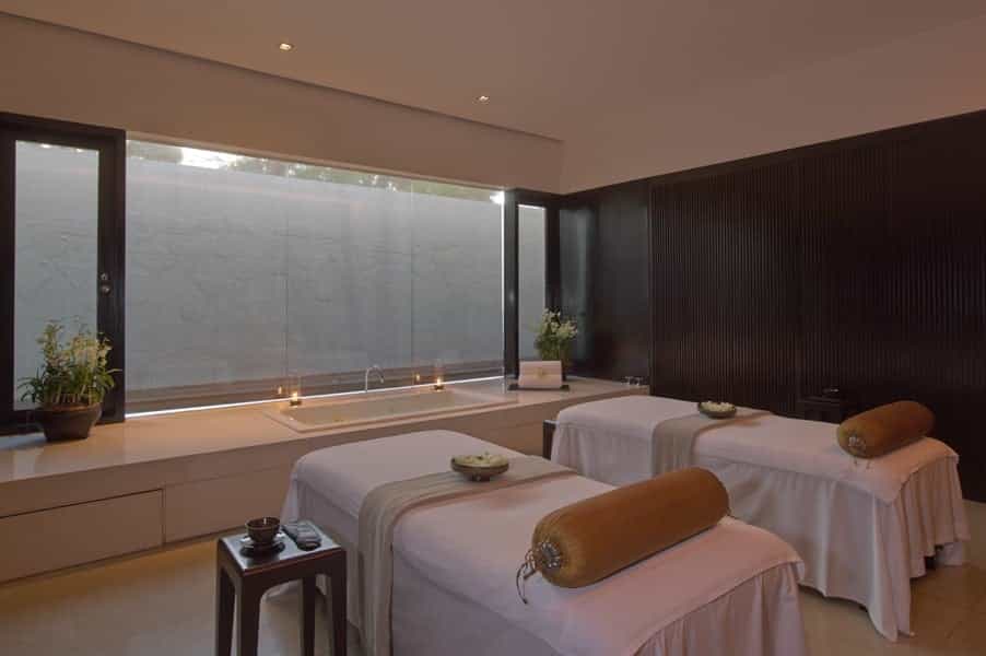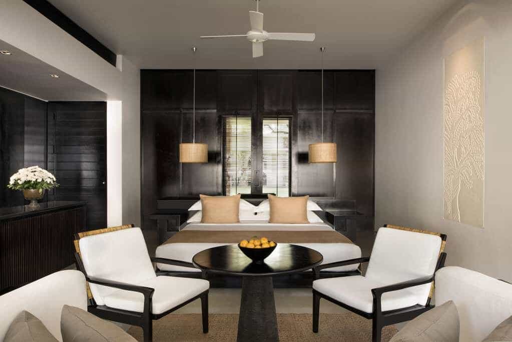 Softly finished with pale terrazzo and timber, the open-plan suites have polished, retro furnishings including a pillowy bed, writing desk and lounge. Expansive glass doors lead into a sunny courtyard decorated with ornate carvings and cushioned spots to recline - and some have a private pool. The bathrooms are in-suite (the toilet and rain shower are separate) with a superb island bath and slick, black vanities. The air-conditioned suites are well-stocked with a sound system, mini bar and a daily supply of fruits, cheese and freshly-baked treats.