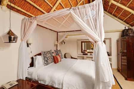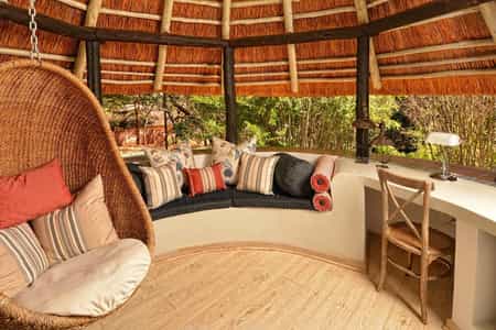 With its lush garden and multi-peaked thatched roof, the lodge is distinctly African in character. Scattered throughout are antiques and contemporary art from across the continent, along with a clever combination of modern and traditional furnishings. The on-site restaurant, set in an old farmhouse, is popular for its excellent fusion menu. There's a veranda for lingering with a cocktail and tapas, a spa and small gym, a pool and tennis court, and don't miss a snoop around the garden.