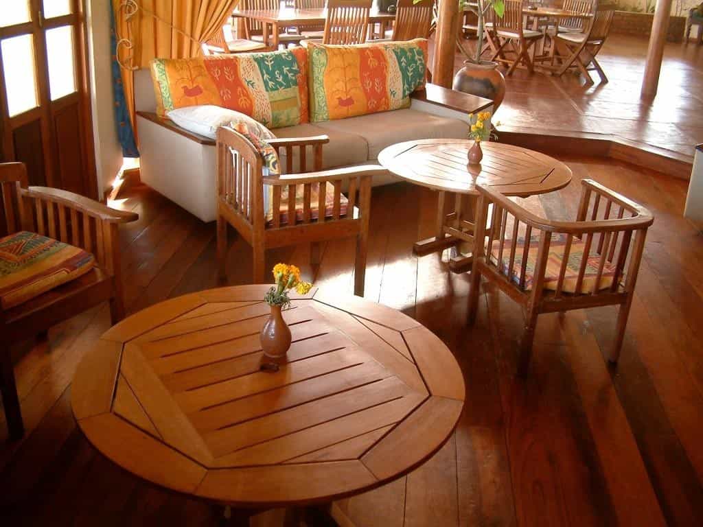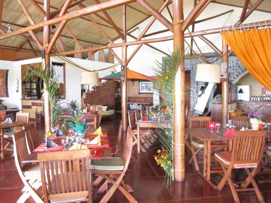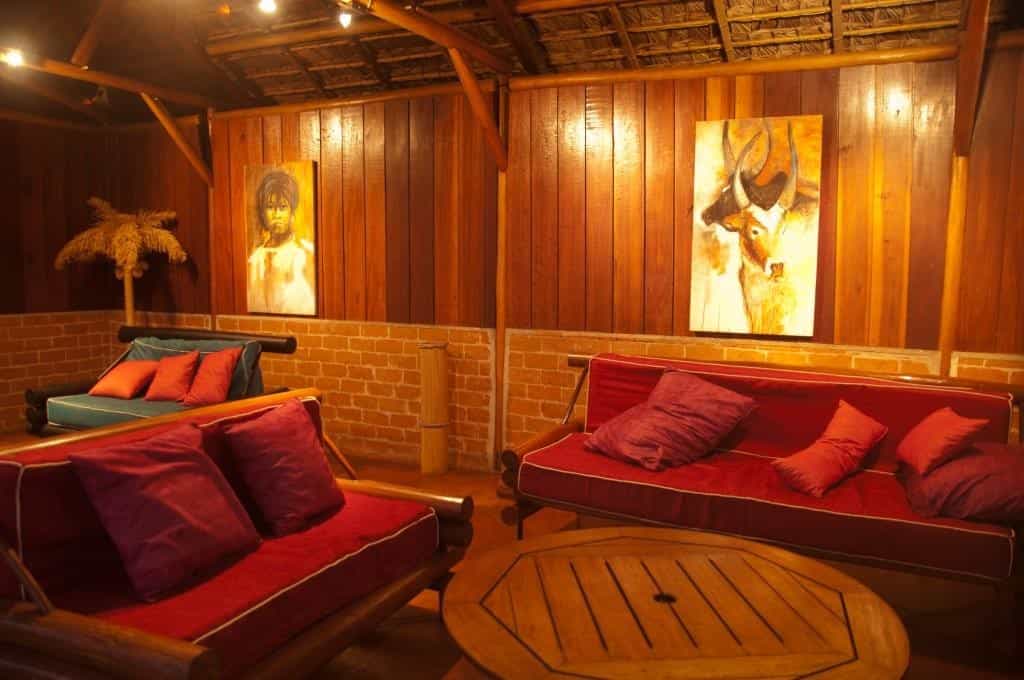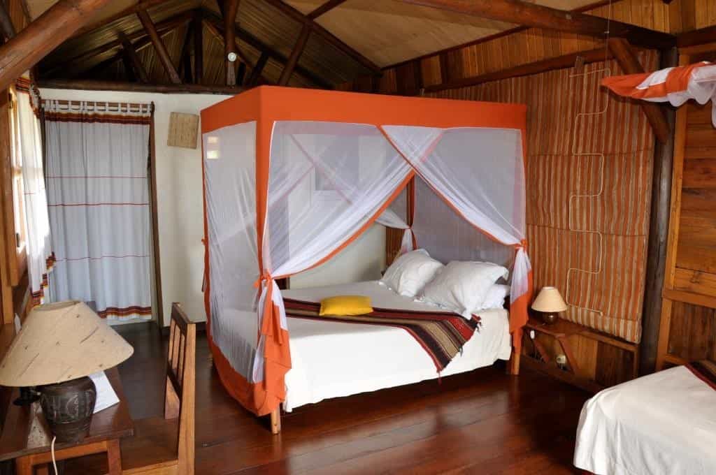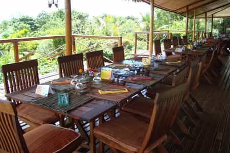The heart of the lodge is an open-plan thatched timber dining room and bar, with rich natural tones of rosewood and bamboo, and colourful locally produced works of art. Outdoors is a terrace with several comfortable seating areas where guests can relax and enjoy a special Malagasy cocktail while admiring the views. Cuisine is a tasty fusion of French and local dishes featuring seasonal local produce and delicious seafood. (Vegetarian? Try the ratatouille.) There's limited wi-fi in the main area.
