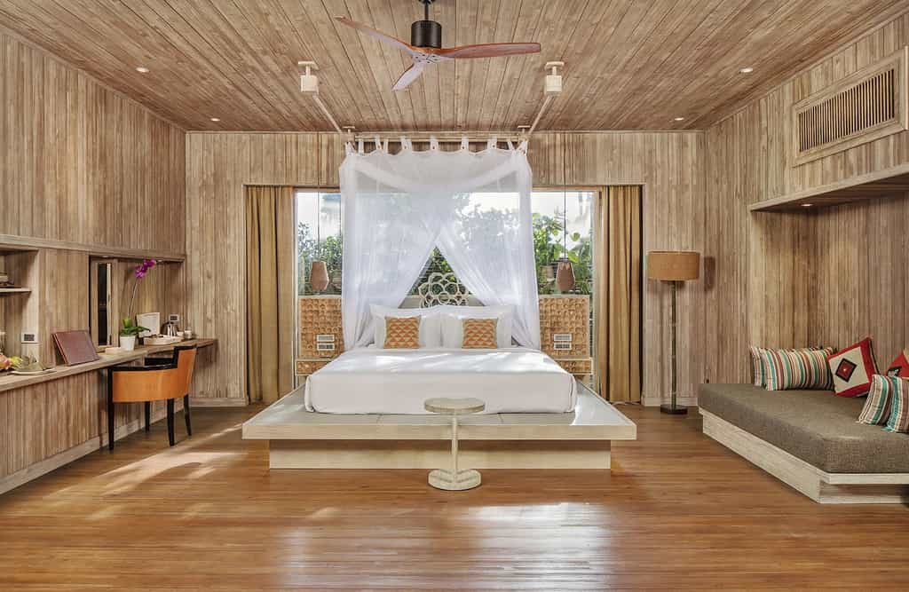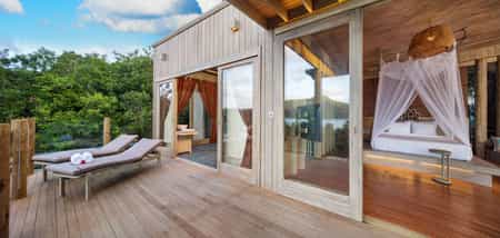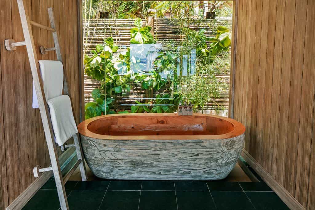 In true tropical style, the villas at An Lam are crafted from wood, from the bed platforms to the finely-carved decor - and even the bathtubs. Enjoyed through floor-to-ceiling windows, the vistas range from jungle to lapping waves, while some rooms are only a few steps from the beach. There are also two and three-bedroom villas, all with a creative design, dining area and large private pool. The bathrooms are lush with indoor and outdoor features, tons of space, and those views.