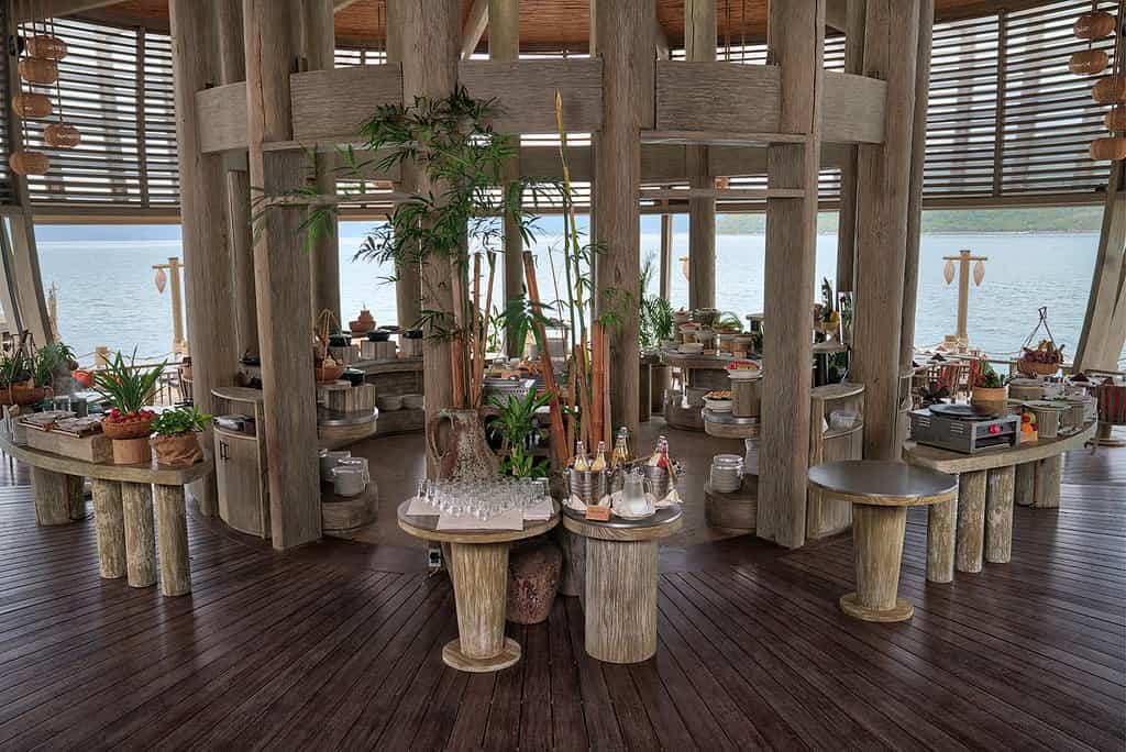 One of our favourite features is the spherical Sen Restaurant. Built on the rocks, with tasty seafood served on the lower floors and cocktails on the gravity-defying rooftop deck, the views are superlative! If it's up your alley, join the resident yogi for a Sun Salutation session on the pier, or enjoy many languid hours by the pool before saying goodbye to the knots with a glorious treatment at the Jungle Spa - there are coconut scrubs, full-body massages and the famous Nha Trang mud wraps to choose from.