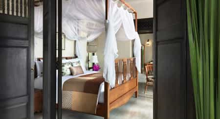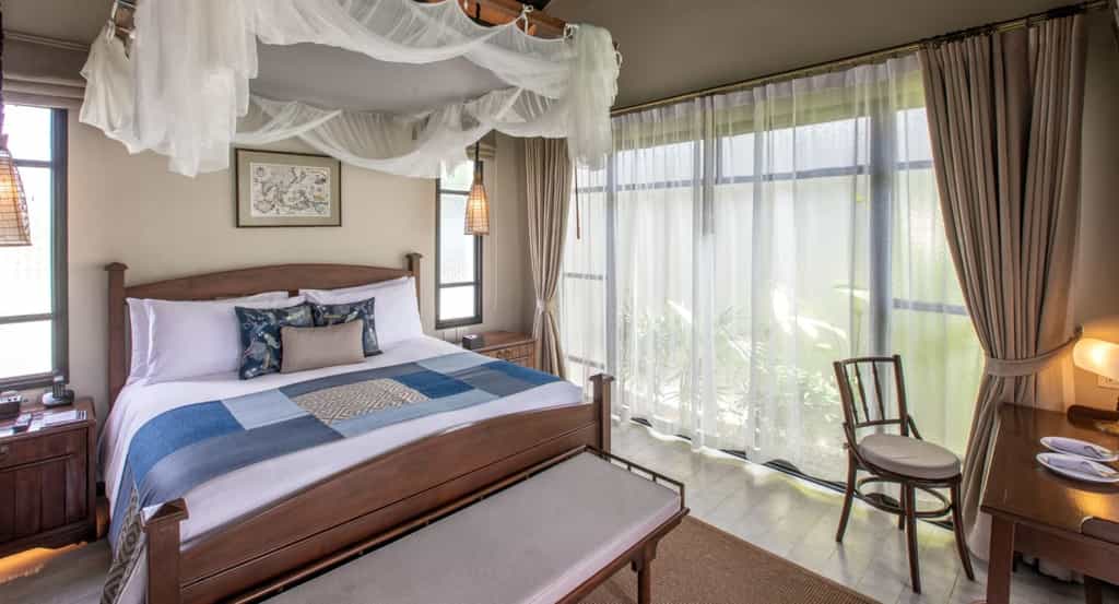 The lifestyles of Thai-Chinese traders are echoed and honoured throughout the luxurious accommodation spaces, from the Pool Suites that resemble the old-style shop-houses of Middle Road, to the Pool Villas with their fishing lamps and maritime blues, arranged around the lagoon like a peaceful fishing village.