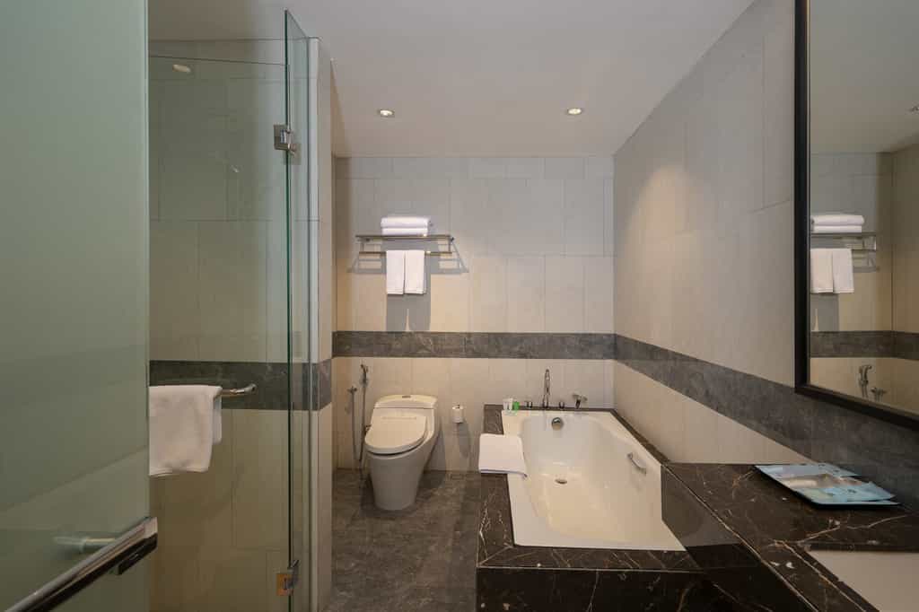 Rooms are designed for maximum comfort, featuring king-size beds, sleek furniture, and soundproofing that ensures a restful sleep. Large windows let in plenty of natural light, with blackout curtains for those needing to catch up on sleep. The en-suite bathrooms feature walk-in rain showers, luxury toiletries, and soft, fluffy towels, providing a spa-like experience. Whether it's a short nap between flights or an overnight stay, your room is a sanctuary from the busy world of travel.