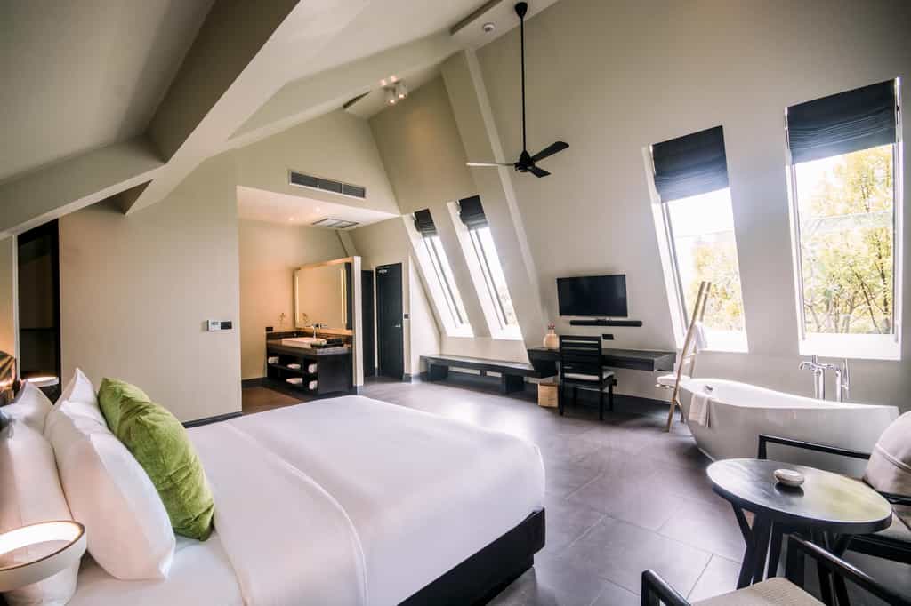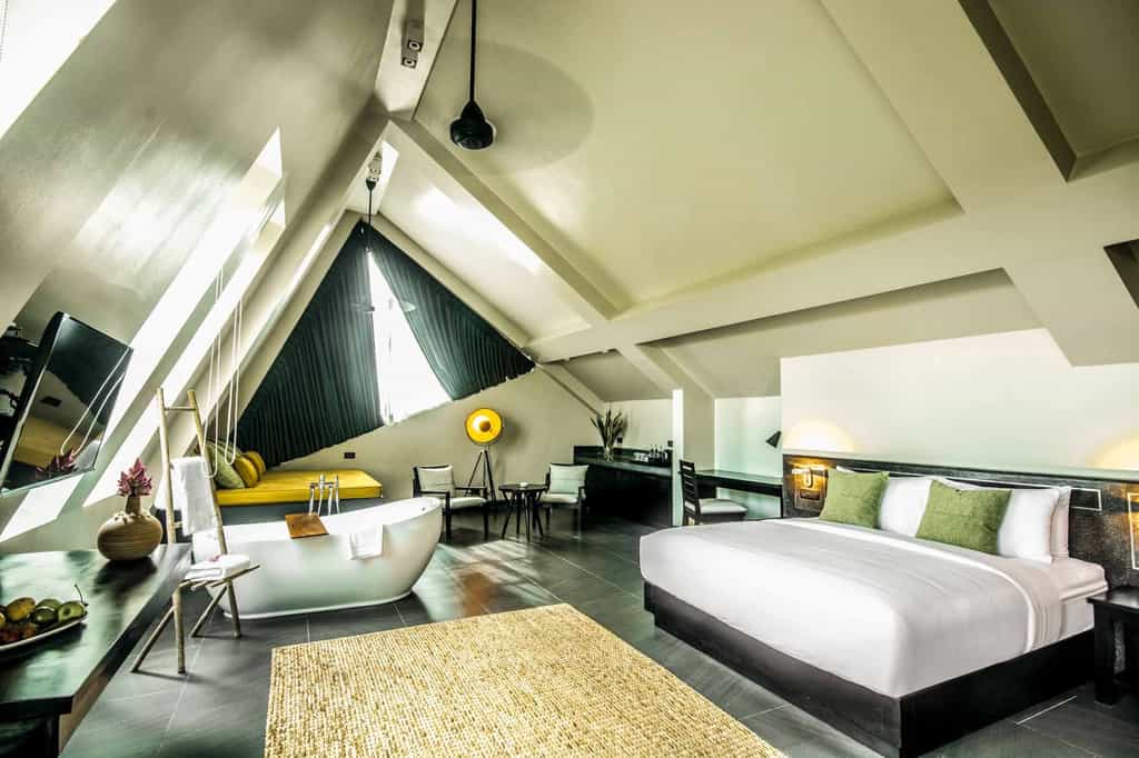 The hotel houses sophisticated rooms and suites, ranging from a superior twin room to a deluxe rooftop suite. Each room type is thoughtfully decorated and features modern amenities which include Wi-Fi, air-conditioning and a mini-bar.