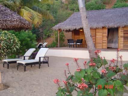 There are 35 separate sea-facing bungalows, their thatched roofs blending with the surroundings. The style is Malagasy with touches of home, and the rooms are certainly spacious, with wooden floors, a private veranda with sunbeds and an en-suite bathroom. (Look out for some of the quirkiest loo-roll holders you've ever seen). Each bungalow has been designed to sleep a family of four, with large beds and curtains separating the adult and children's sleeping quarters.