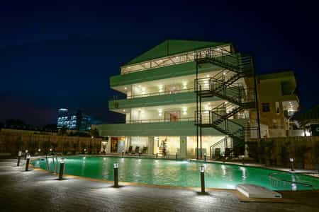 Annai Resort has a multi-cuisine restaurant, Bar, conferencing facilities, three swimming pools, party lawns with Cottages overseeing the Ocean.