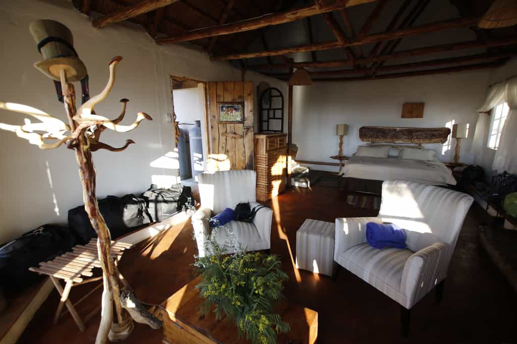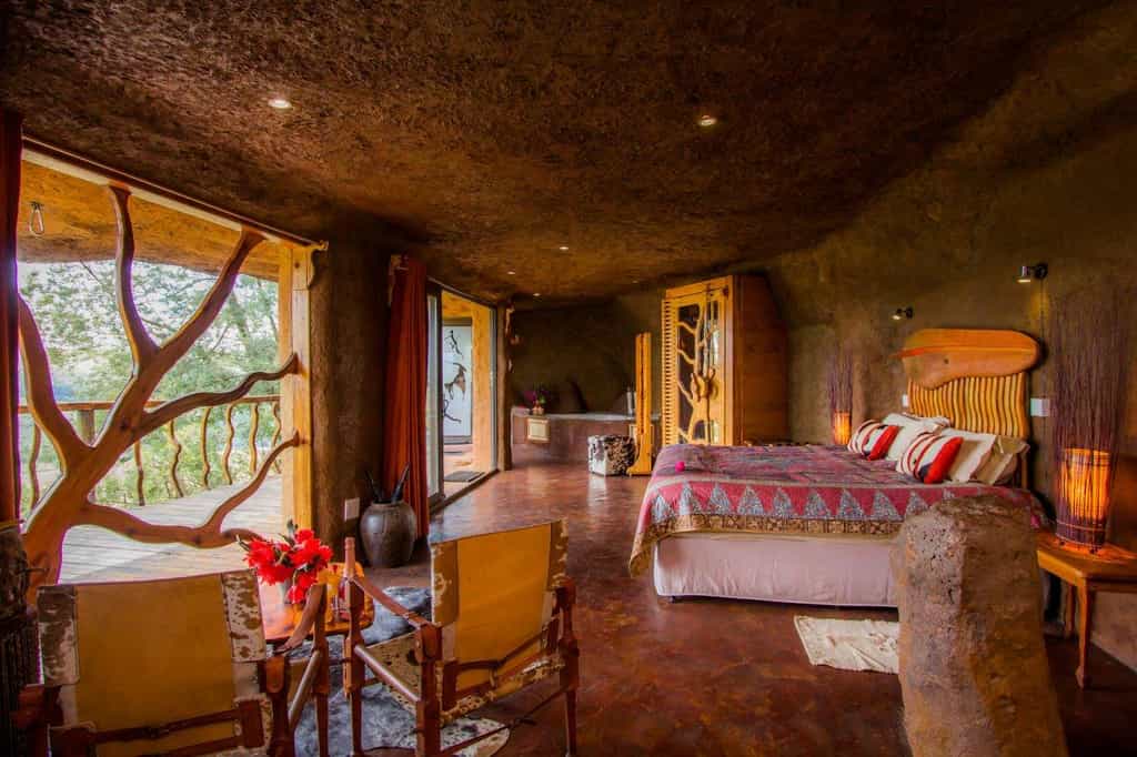 The lodge includes a restaurant, small bar and lounge, all furnished with items handmade on site. (Picture organically curved pieces, huge mosaics, stained-glass windows – there's artistry in every detail.) Meals are delicious, sourced from the resort's own organic vegetable garden and farm, and no dietary requirement is too much trouble. Don't miss tasting Antbear's own cheese. There's also a spot to settle back in a hammock to listen to the night sounds and African stories of the stars.