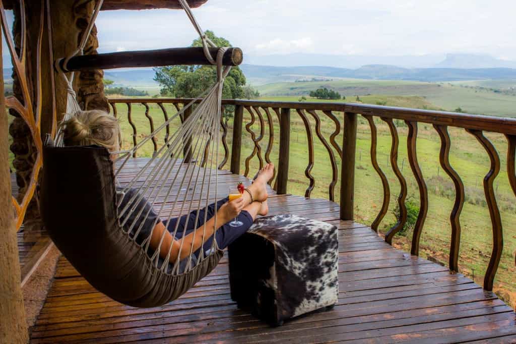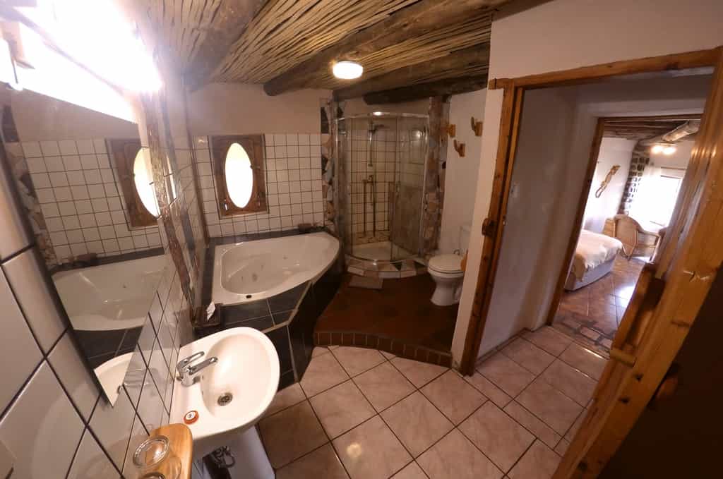 The owner's master craftsmanship is evident in all the rooms. The Garden View Suites have queen-sized beds, en-suite bathrooms with shower and spa tub, and a garden-facing patio. Larger Mountain View Suites have spacious lounges, bedrooms with king-sized beds, en-suite bathrooms with Jacuzzis, and wide escarpment views. The Luxury Cave is just that, a cave with a glassed-in opening. Cosy and comfortable, there's a Jacuzzi in the bedroom, a lounge with open fireplace, and hammock chairs on the veranda.