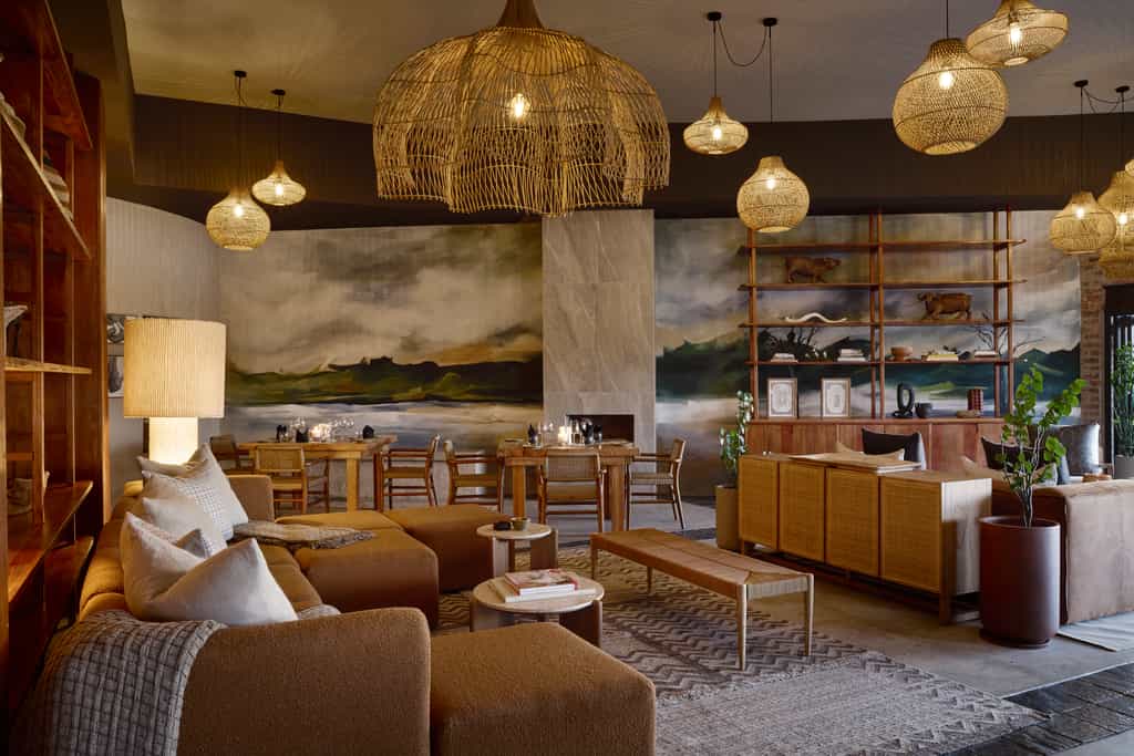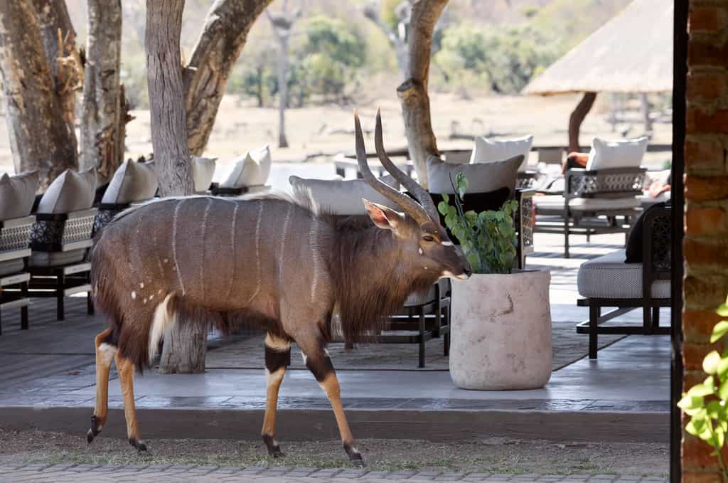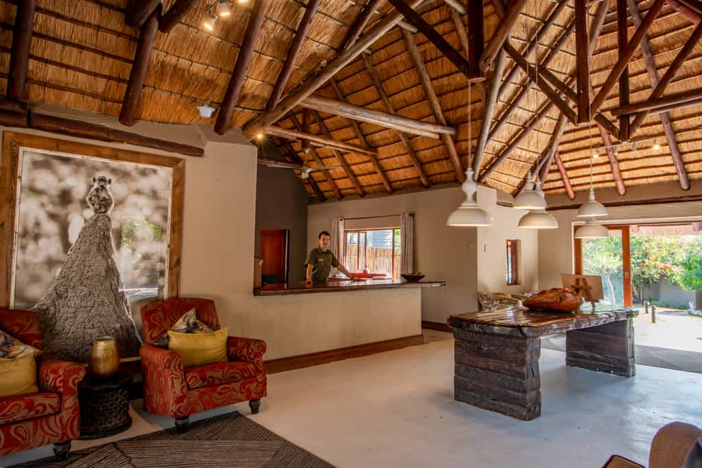 The open plan main area has a traditional bush lodge atmosphere, inviting you to bring your book and sink away in a soft chair or chat to your fellow safari goers. Dinner is served inside or al fresco in the boma. The common area also boasts a large infinity pool and a safari spa. The deck overlooking the waterhole is a favourite for most. Watching the sun set, drink in hand, while the animals gather below takes first prize.