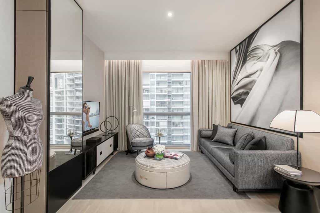 Even the compact studios pack in full kitchens with Nespresso machines and washing machines – rare finds in any hotel. One-bedroom suites up the ante with floor-to-ceiling windows (that actually open!), sophisticated dark fabrics and striking monochrome photography. Bathrooms vary from rain showers in the studios to proper soaking tubs in the larger suites. Those splashing out on penthouses get the full treatment with Fendi furnishings and curved TVs, though honestly, the regular suites are perfectly plush.