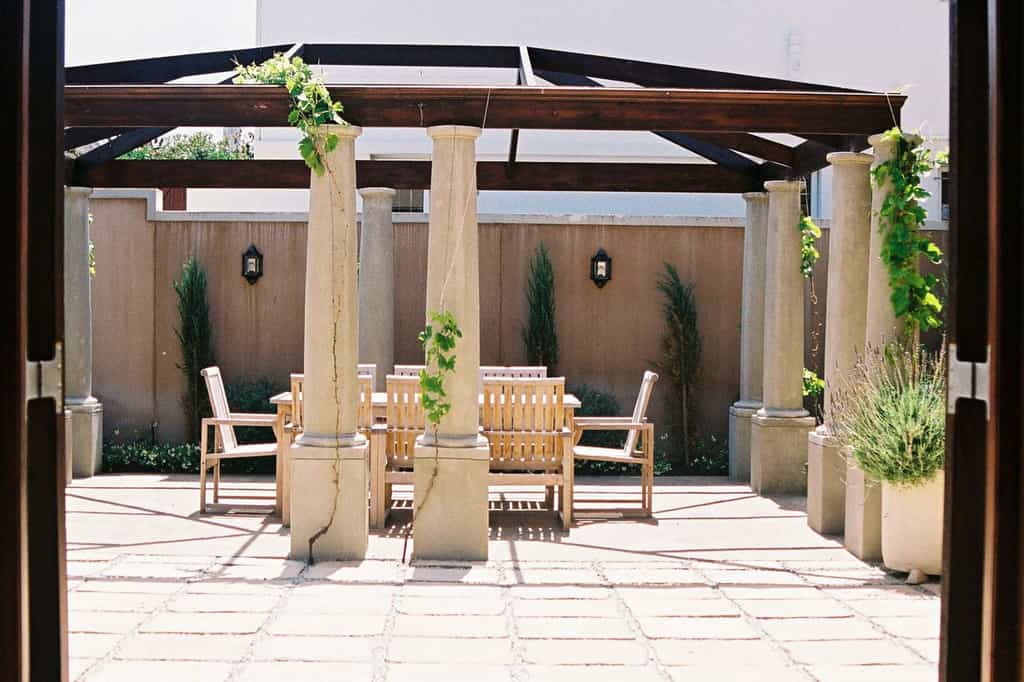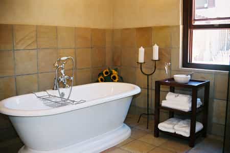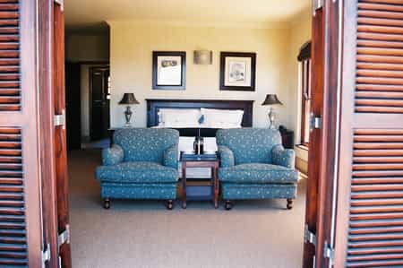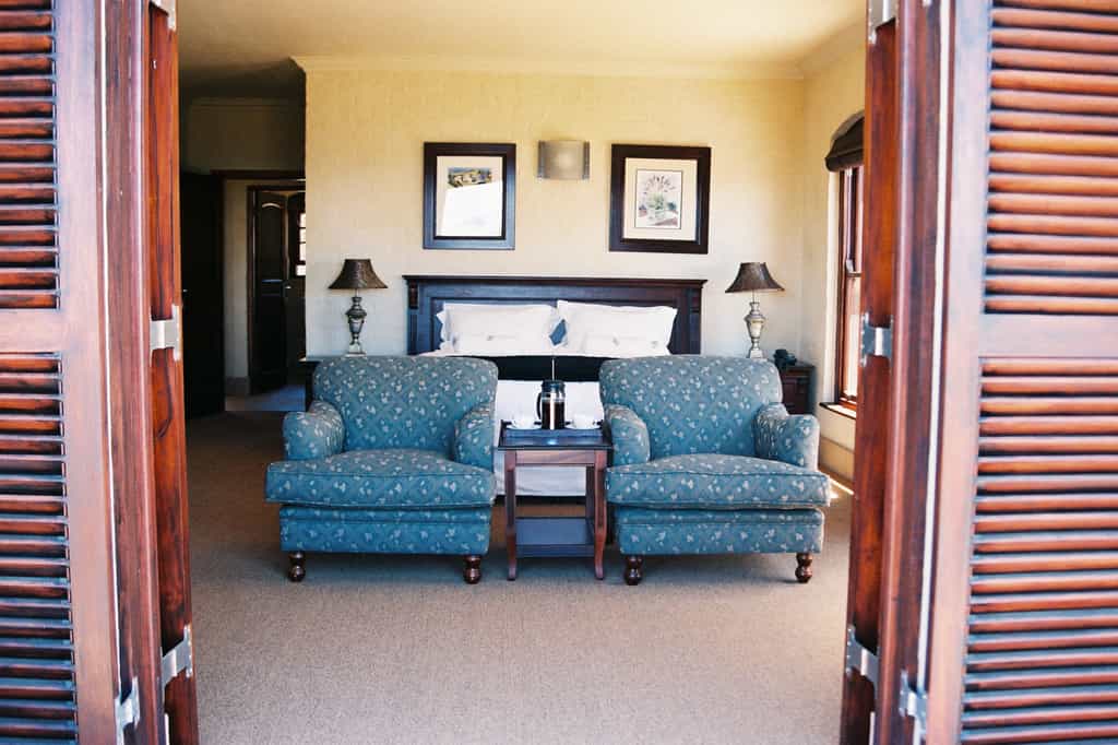 The Farmhouse is hard to miss on the Hermanus coastal path with its majestic russet façade and traditional wrought-iron balconies. Inviting oak doors lead to a fragrant and shady courtyard and pretty stone terrace at the back, where breakfast is often served. A swimming pool and sun loungers provide a perfect spot to relax and soak up the sun, whilst the spacious sitting and dining areas inside are cosy and just waiting for the crackle of a roaring fire.