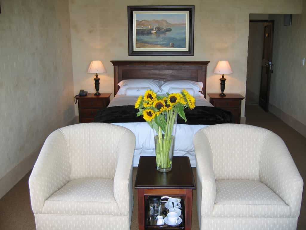 The 5 suites are individually designed but all are decorated in soft, relaxing tones with lots of natural wood and crisp linens in a pretty French country style. All take advantage of the magnificent vista (views from the Harbour and Fynbos suites are, we think, the best) whilst the Lavender suite has a private courtyard and mini plunge pool and the Overberg, its own Jacuzzi for those looking for a spot of romance.