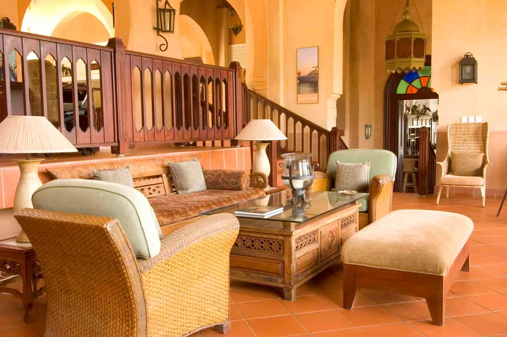 The luxurious rooms range in size, with Classic Rooms overlooking the gardens and the Indian Ocean, and Courtyard Rooms along mezzanine walkways opening into the sheltered inner piazza. The two Royal Suites have more space to offer, and the self-catering garden villas provide a nice alternative. All have beautiful, en-suite bathrooms, and share an understated colonial style with touches of exotic Arabian influence, Persian rugs underfoot, and all the modern facilities you’d expect from a hotel of this calibre.
